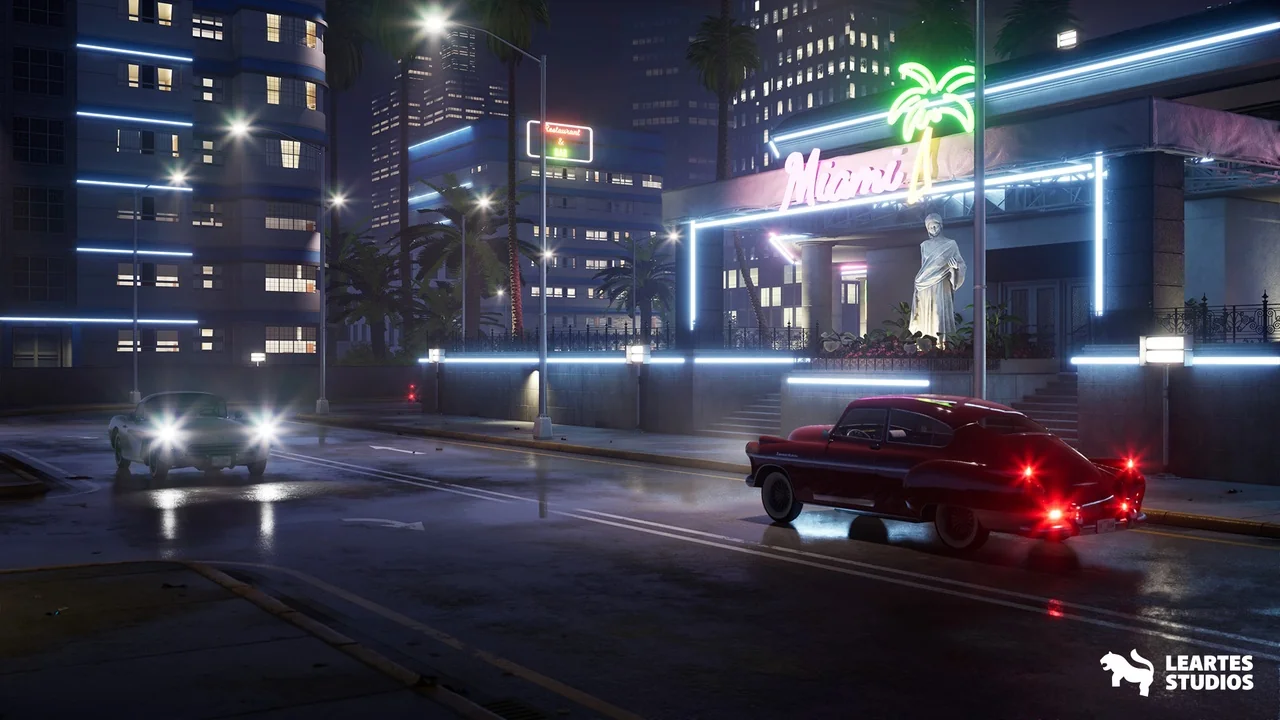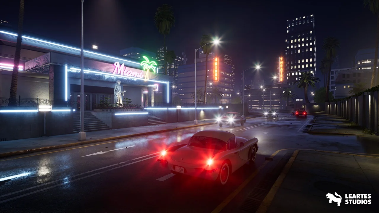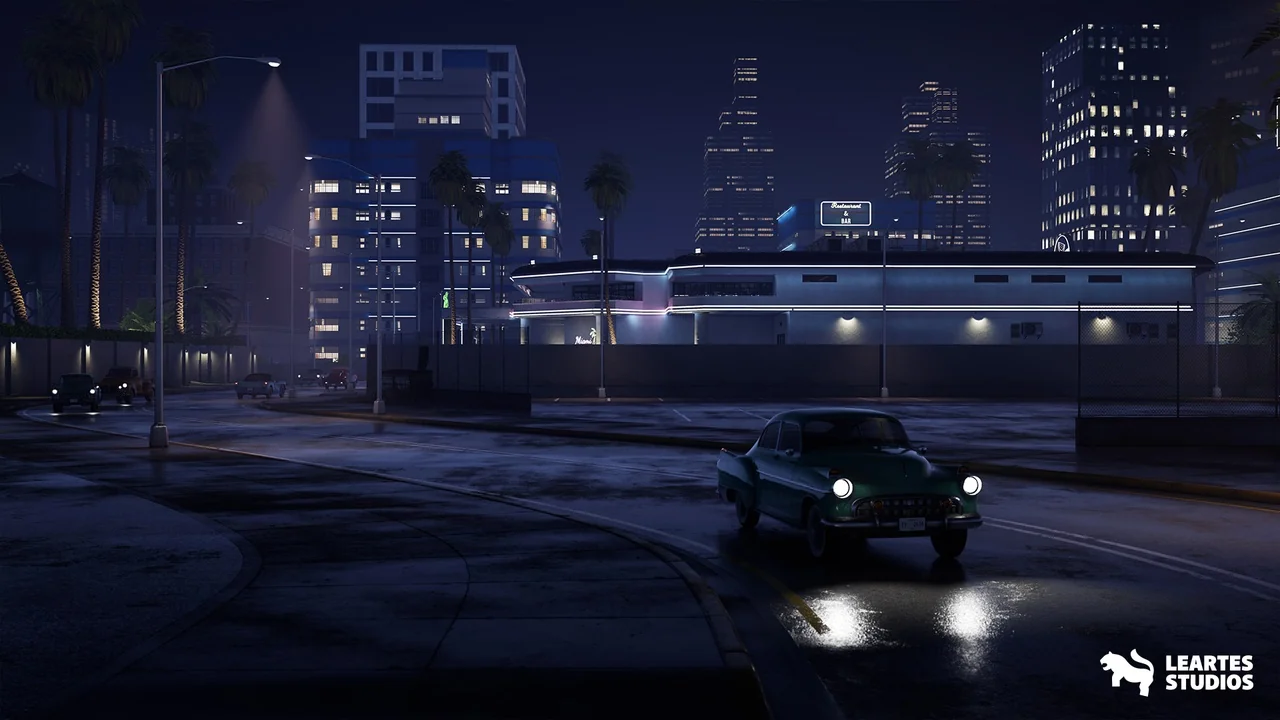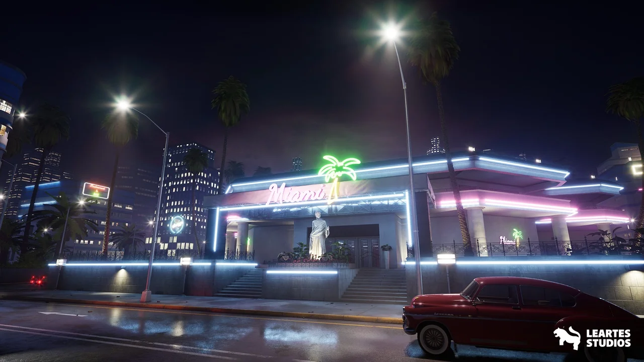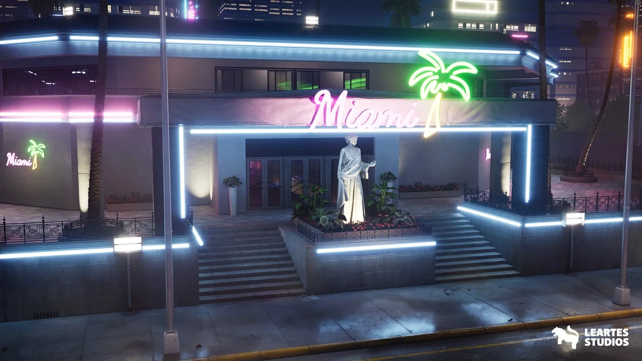 A preassembled Miami nightclub scene