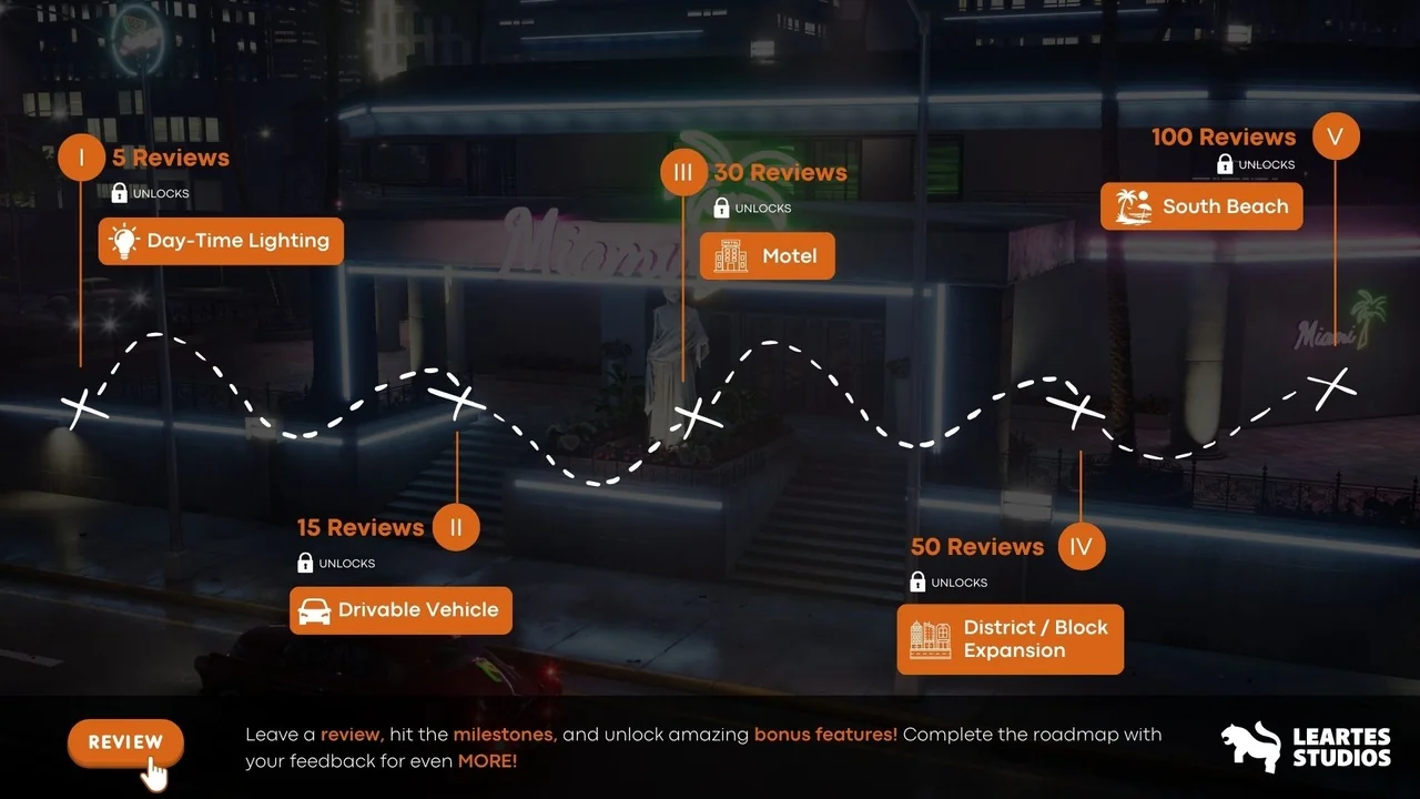 A community review roadmap is built into the expansion plan, with new content updates added free for existing owners as milestones are reached. The listed milestones are:
