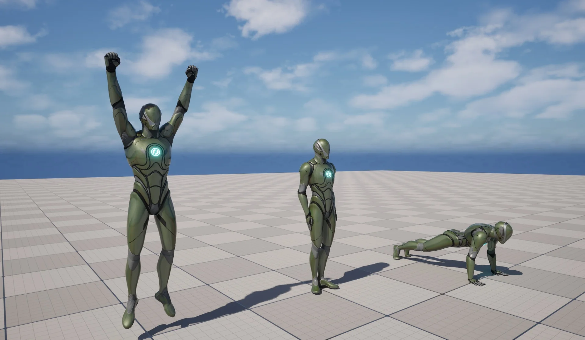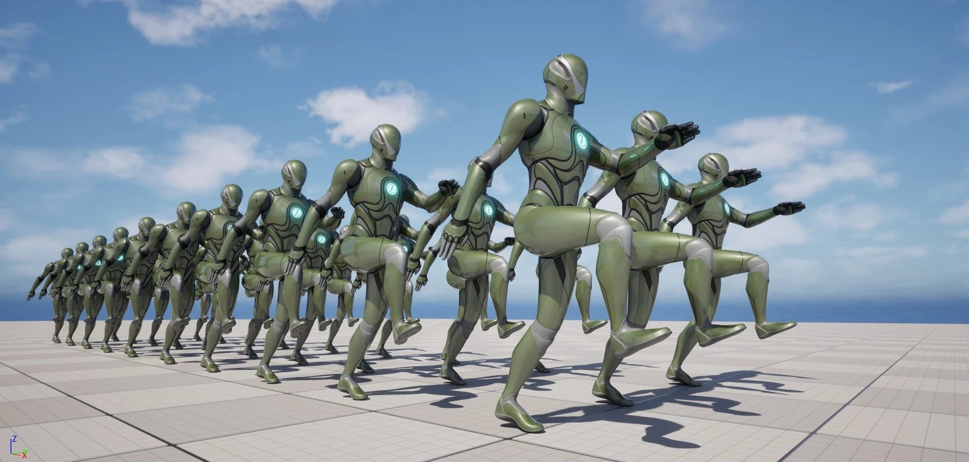 The presence of root motion and start/stop animations points to a pack that is meant to handle transitions, not just isolated poses. Marching can begin, continue, and end with motion that carries the character naturally. The same applies to the exercise actions and turn-in-place sequences, which helps each animation feel connected instead of abruptly cut off.