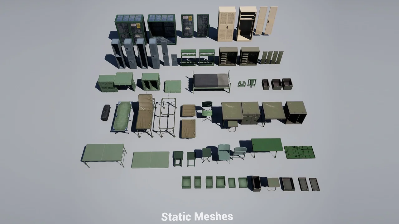 This military furniture collection is an essential resource for environment artists and level designers. It combines high-end visuals with smart technical optimization. Finally, the included documentation ensures you can integrate these assets into your project with ease.