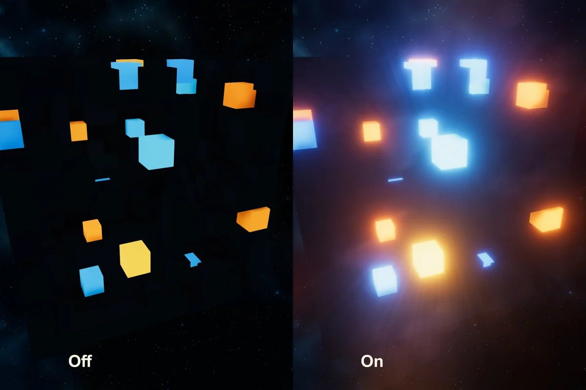 Natural takes a different path. It uses no color cutoff and no thresholding, which makes it behave more like real life. The effect is described as energy-conserving, and the setup is as simple as raising the emission of the materials. For scenes that need a realistic response to brightness, this is the more direct route.