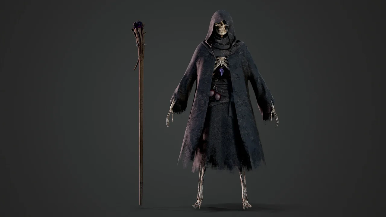 The polycount is carefully balanced for modern hardware. The fully clothed skeleton contains approximately 41,708 triangles. Meanwhile, the standalone staff adds another 4,026 triangles. If you prefer a lighter version, the bare skeleton sits at 30,469 triangles. Consequently, this asset maintains high visual fidelity without sacrificing your game’s performance.
