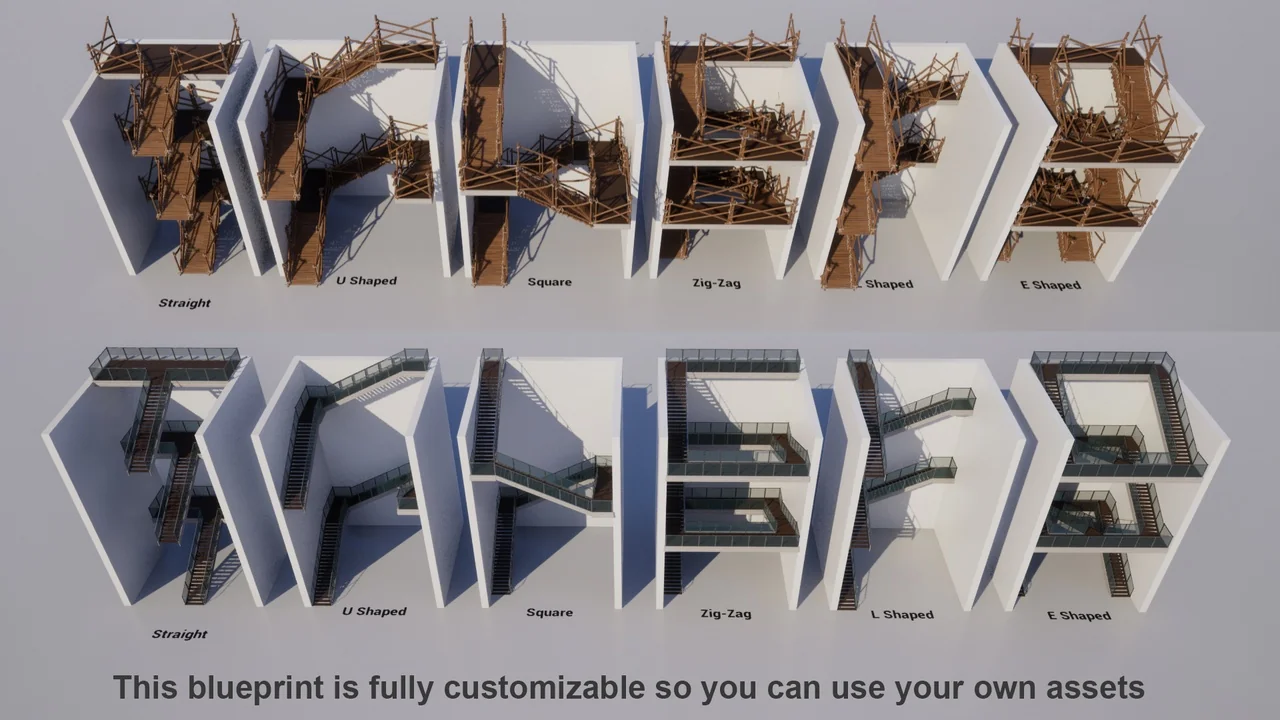 That makes it a practical tool for teams that need stair setups to adapt across different environments. It can support quick testing, custom asset integration, and layout changes without turning the staircase into a manual rebuild every time the scene changes. For projects that need stair placement to remain flexible, the strongest takeaway is simple: the blueprint is built to calculate, scale, and reorganize its parts around the measurements and options you give it.