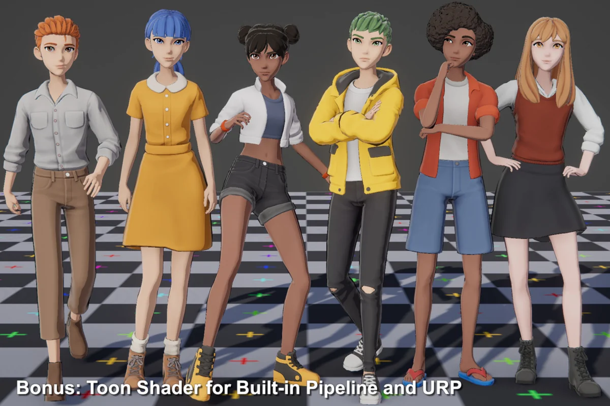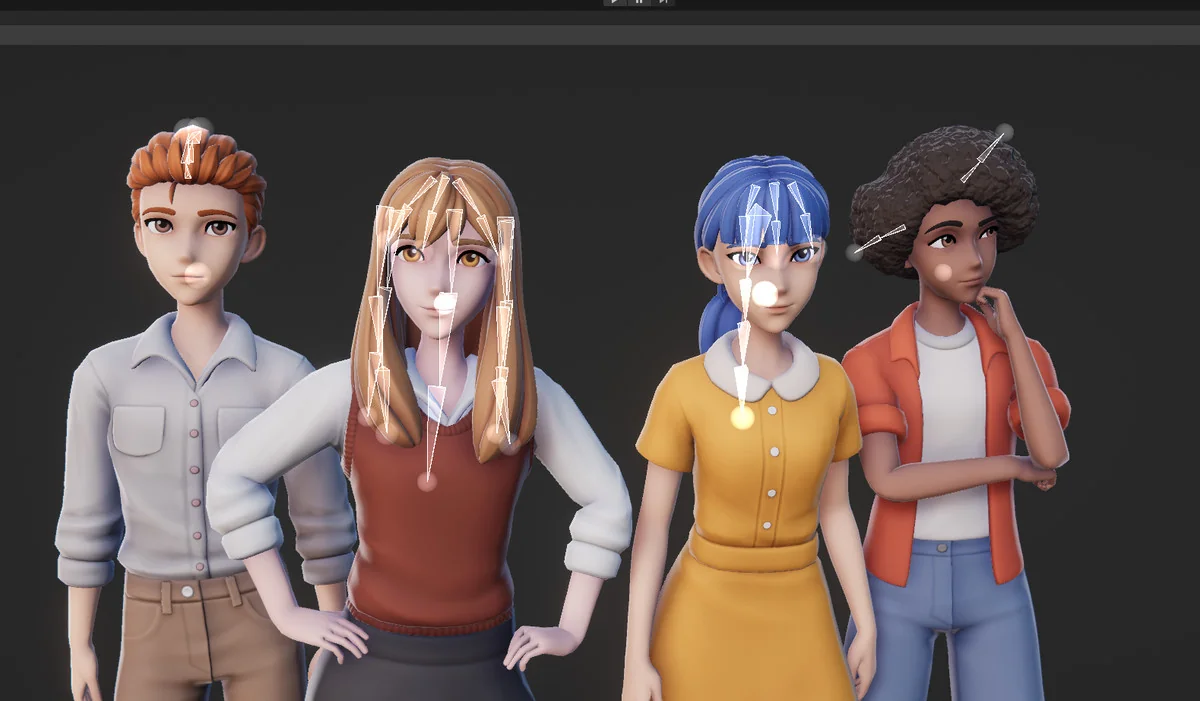 Implementation relies on a standard Humanoid rig, ensuring compatibility with external animation libraries like Mixamo. While the package does not include pre-made animations, the technical setup is designed to accept standard humanoid animation data immediately upon import. Beyond the primary body rig, the developer has included specialized rigs for hair objects. These dedicated rigs allow for dynamic hair movement or secondary animation, adding a layer of physical reactivity to the stylized models.