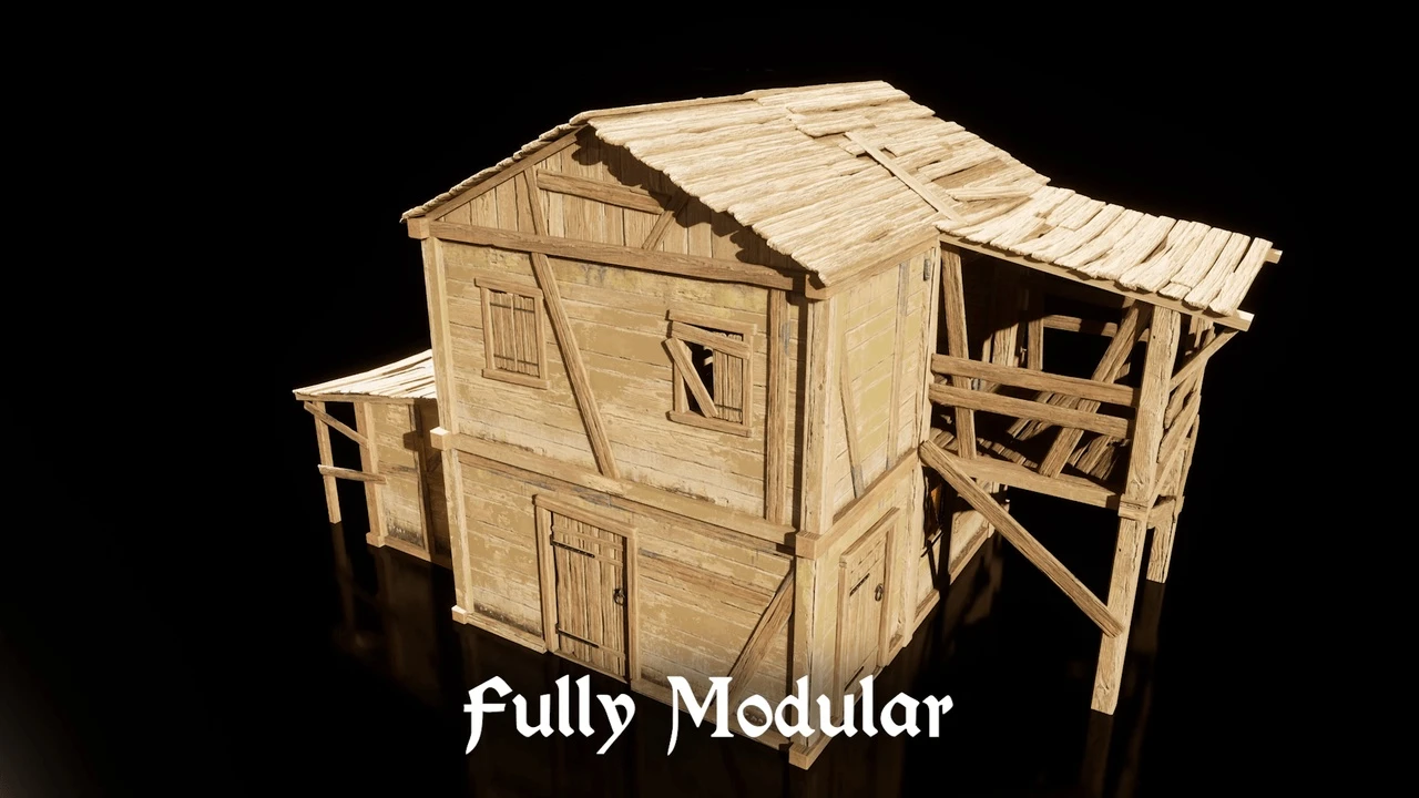🌲 Fully Modular – To construct the prefabs we have used our versatile modular kit consisting of highly adaptable meshes that can be combined in create a virtually endless array of wooden architecture including houses, huts watch towers, piers, fences and everything in between!