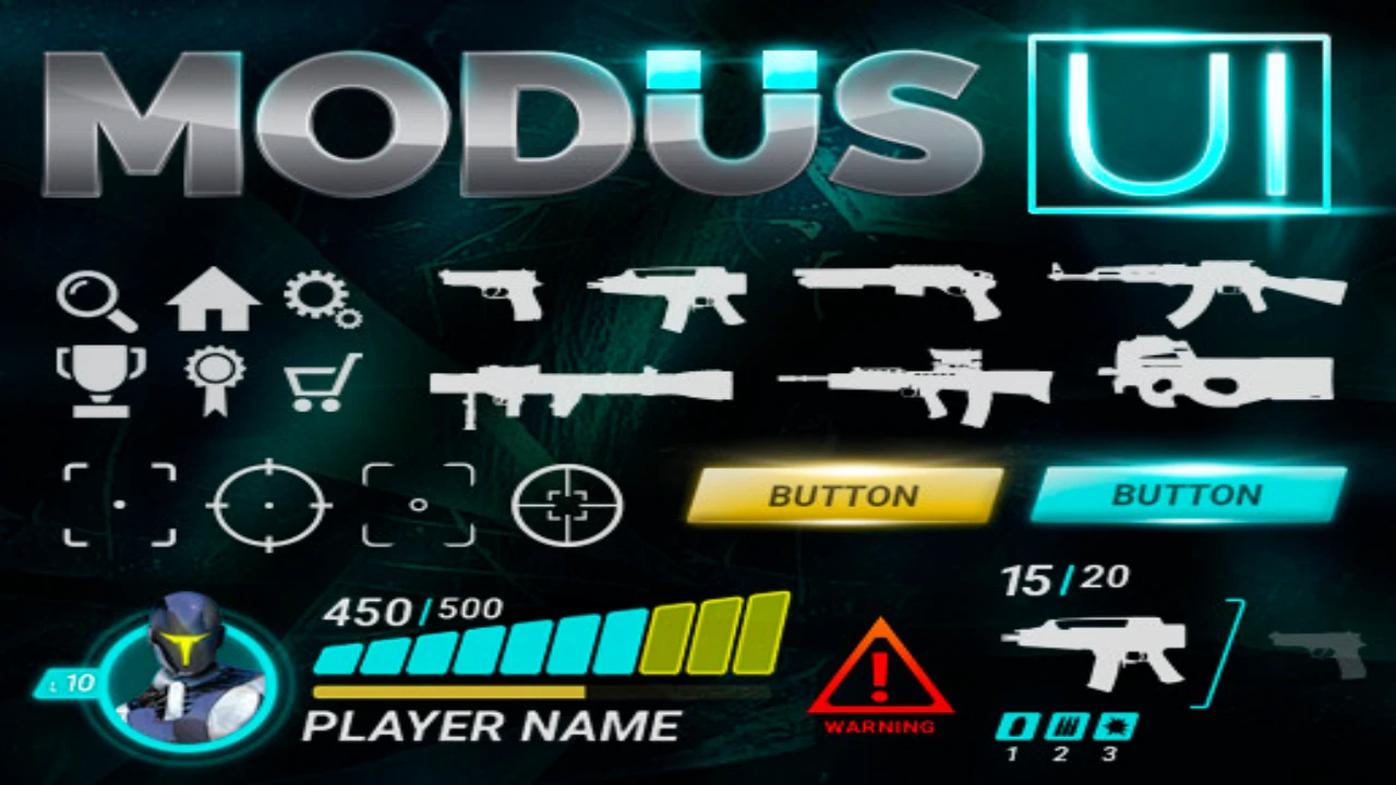 MODUS UI is a UI solution designed for modern and sci-fi multiplayer FPS and action games. It offers a clean, modern look with special effects and minimalist styling.