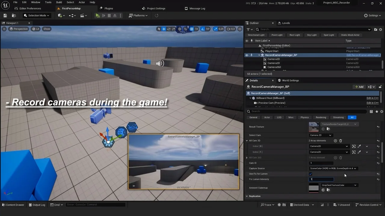 Because the system uses standard nodes, it integrates naturally into existing project logic. You can trigger recordings or switch camera views based on specific in-game events. Consequently, the plugin offers a high degree of automation and control over the capture process.