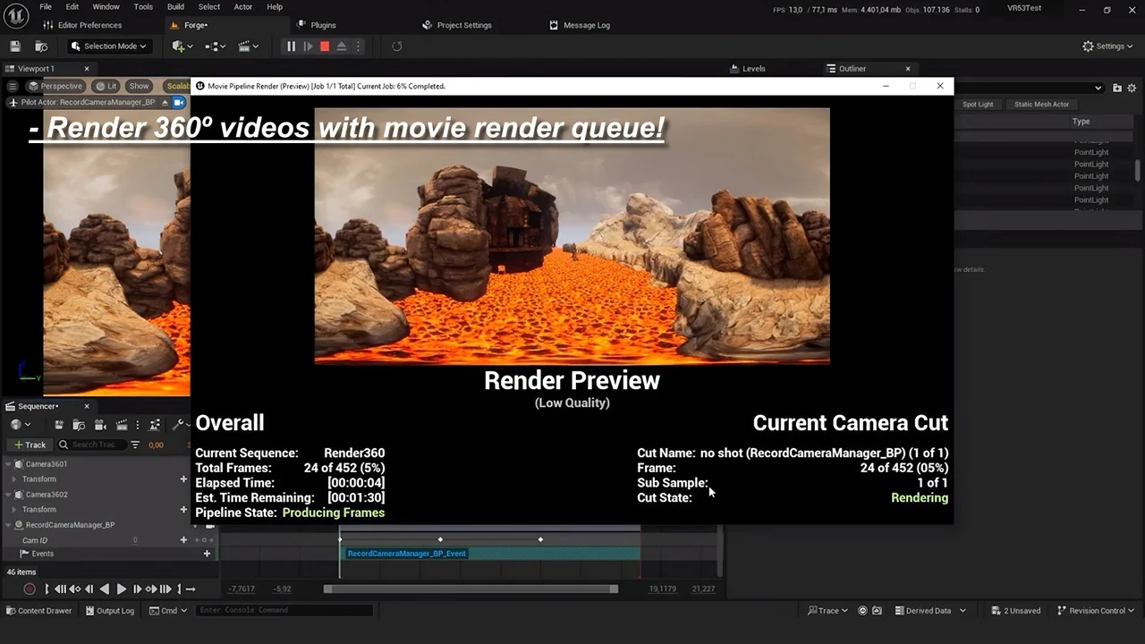 In addition to standard VR recording, the plugin can render videos in 360 degrees. This capability is perfect for creating immersive cinematic experiences. Specifically, it provides the tools necessary to produce content that allows viewers to look in every direction.