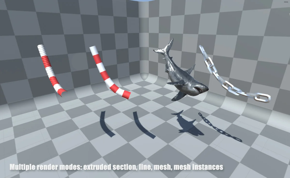 Building a rope does not depend on manual geometry work. Non-linear, non-destructive editing uses splines, and the editor gives immediate visual feedback while the rope is being shaped. That makes the setup process practical for scenes that need quick iteration on length, curve, or layout.