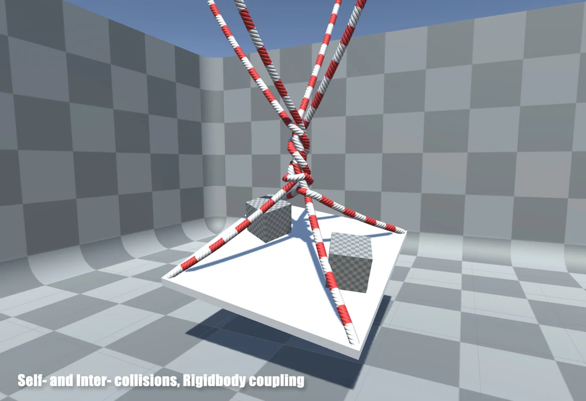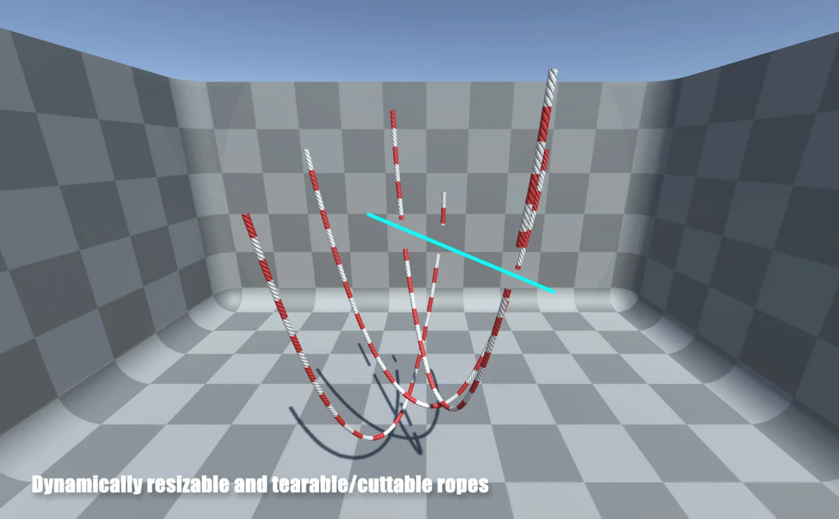 Those controls keep the workflow flexible. A rope can be edited in the scene, then adjusted again during play without forcing the setup into a fixed shape. Per-module solver iteration counts and independent stiffness settings also make the simulation more specific, since one part of the rope does not need to behave exactly like another.