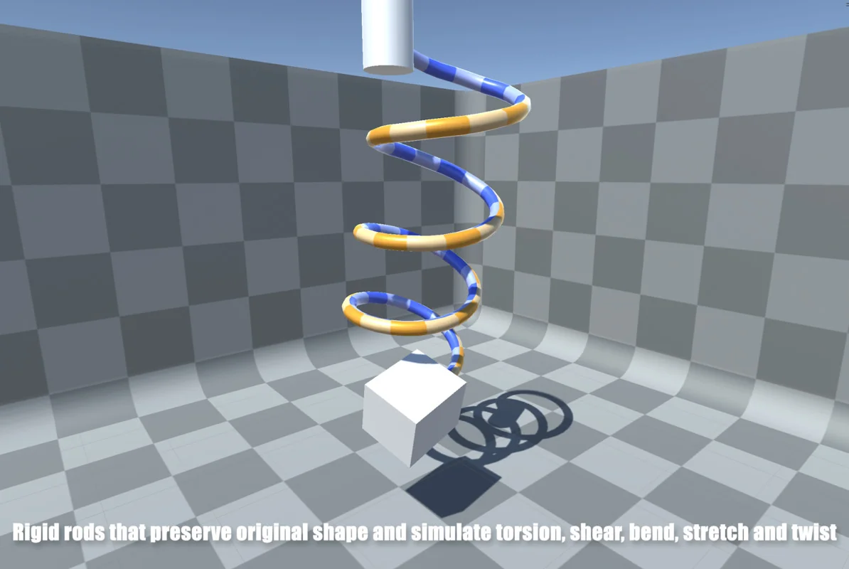 That setup gives the package a broad role in a project. Ropes can be made quickly, rods can carry twisting motion, and bones can add extra movement to character bone hierarchies. The same system also supports collision with the environment and with other simulated objects, so the rope or rod is not isolated from the rest of the scene.