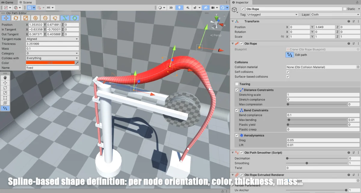 Ropes and rods are often the parts of a scene that need to stay responsive while everything around them holds its shape. Obi Rope fits that kind of work by pairing rope simulation with rod behavior and bone-driven secondary motion inside Unity. The system is built on Obi, an advanced particle-based physics engine that handles a wide range of deformable material behaviors and can run on either the CPU or the GPU.