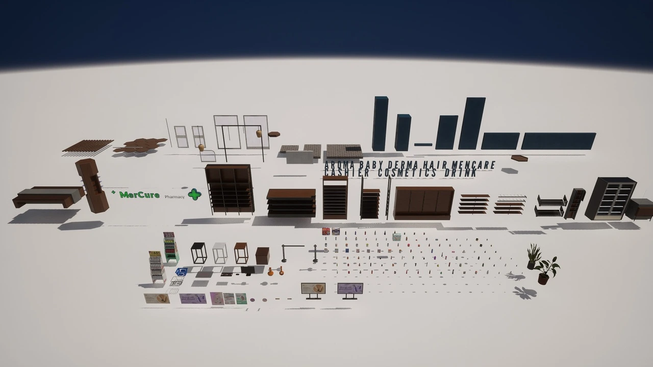 Are you looking to create a highly detailed, believable, and game-ready interior for your project? The AAA Pharmacy & Drugstore Environment is your complete solution. This massive collection provides everything you need to build a stunningly realistic pharmacy, featuring an incredible 285 unique, high-quality meshes and a fully pre-assembled scene ready for immediate use in your game, virtual production, or architectural visualization.