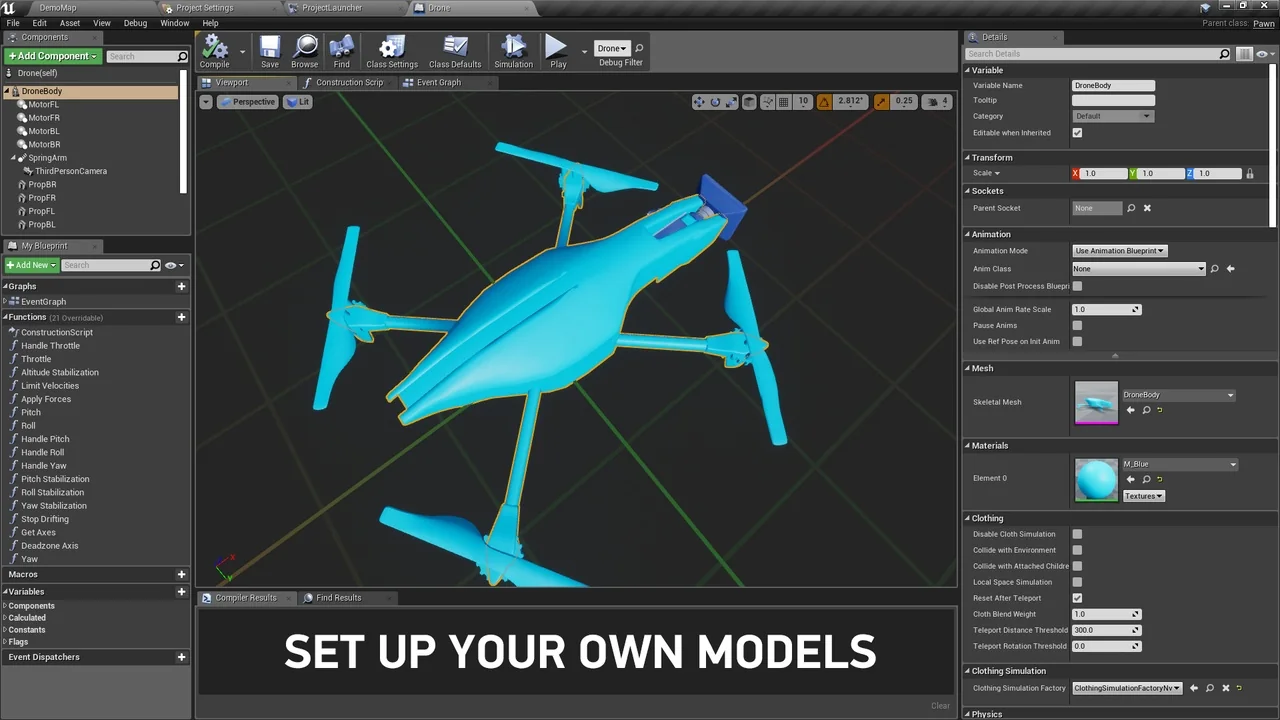 This resource offers a variety of control features to enhance the user experience. The Physically Accurate Quadcopter includes traditional twin-stick controls and integrated camera gimbal control. Additionally, the system provides both vertical and position stabilization to assist users during flight. Consequently, the drone maintains steady performance across different environments.