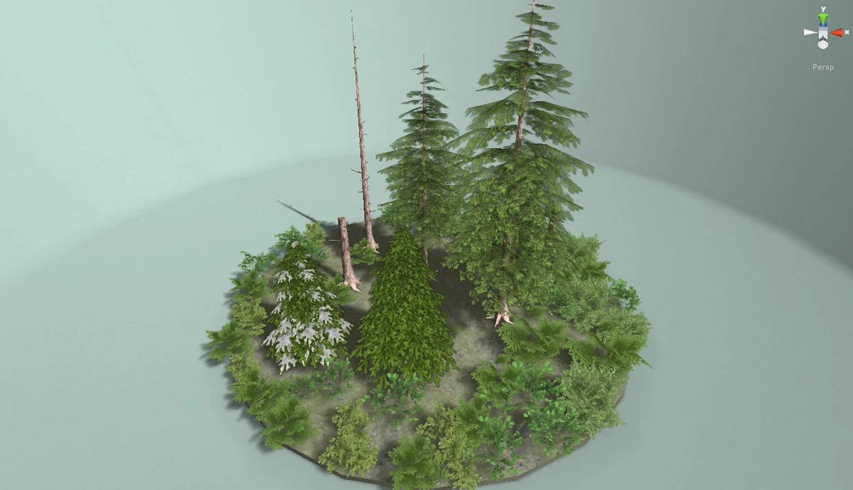 The Pine and Bush Pack is designed to streamline the creation of natural environments within Unity by utilizing the engine’s built-in terrain painter. Compatibility with the terrain painter allows for the rapid distribution of vegetation across large landscapes, ensuring that the 137 total assets in the package can be placed efficiently without manual positioning for every instance. This workflow supports the population of dense forests or sparse shrubland while maintaining the specific technical constraints of low-poly environments.