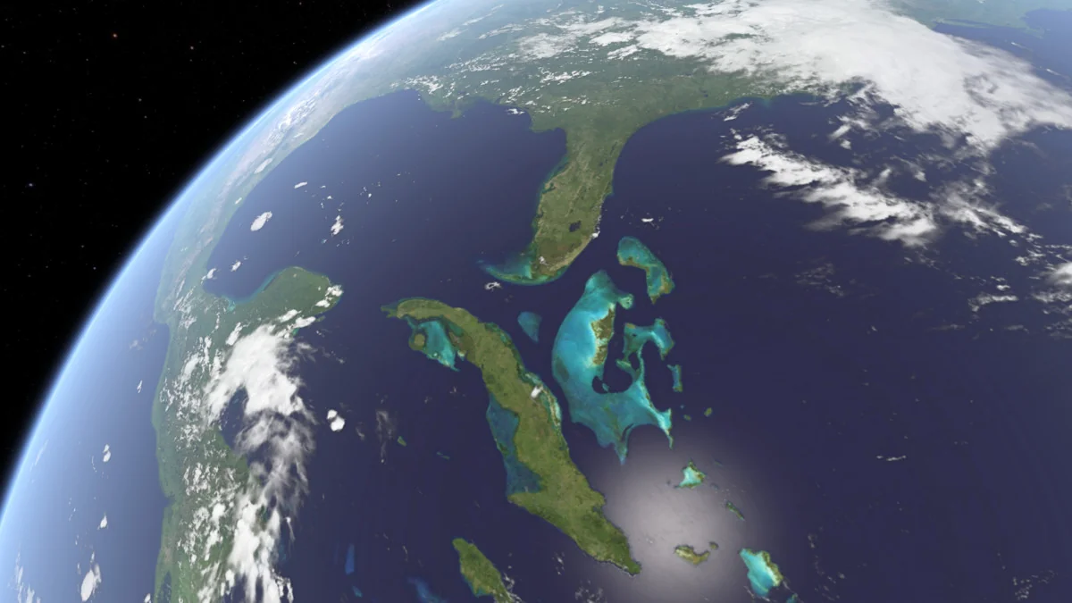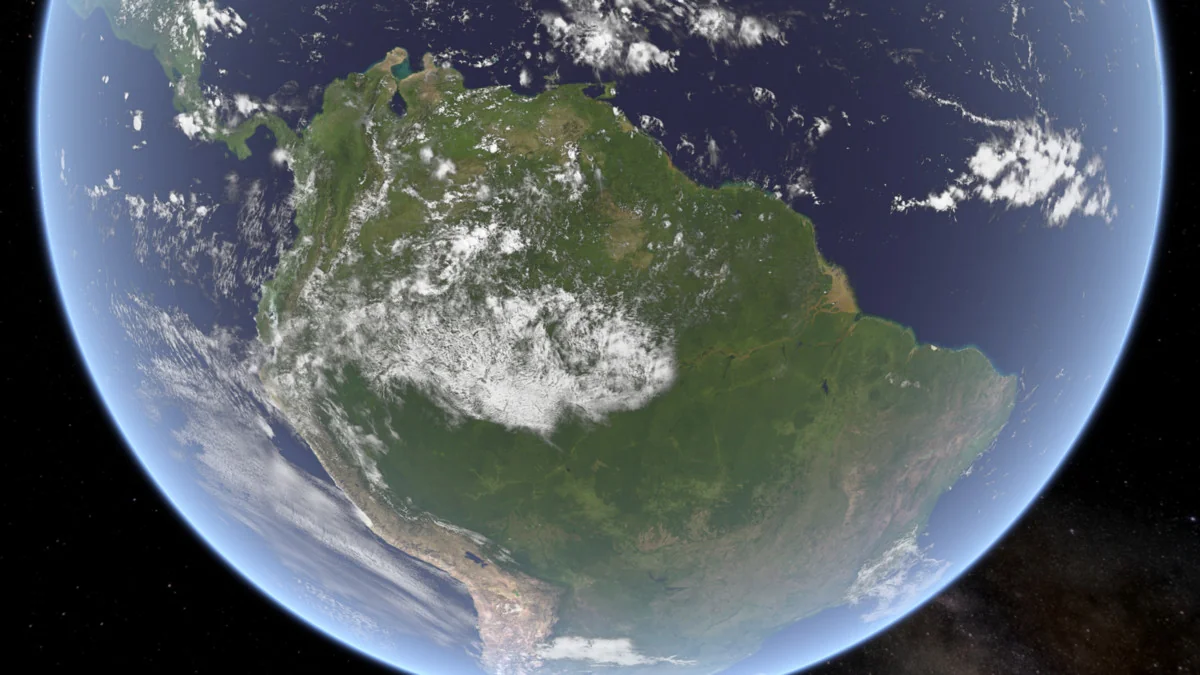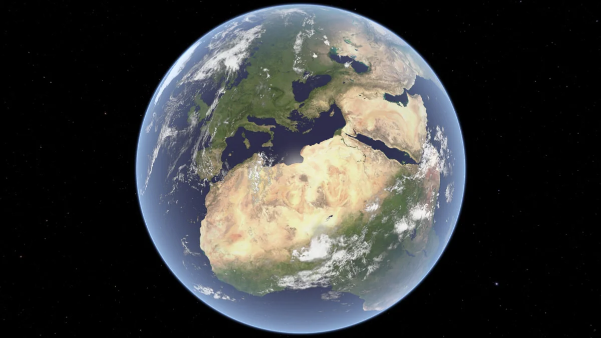Clouds are handled separately from the planet body, along with cloud shadows. That separation gives the clouds their own visual role instead of merging them into the base texture. The package also includes an outer atmosphere shader with scattering, which adds another layer around the planet and helps shape the silhouette against space or a sky backdrop.