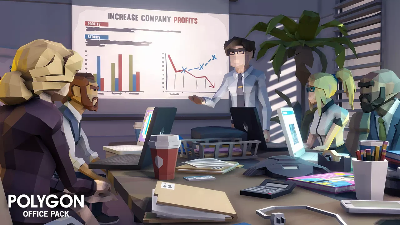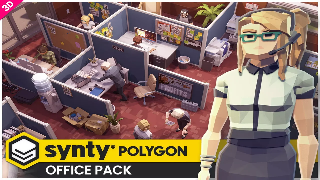A low poly asset pack of Props, Characters, and Modular Building assets to create an Office themed polygonal style game.