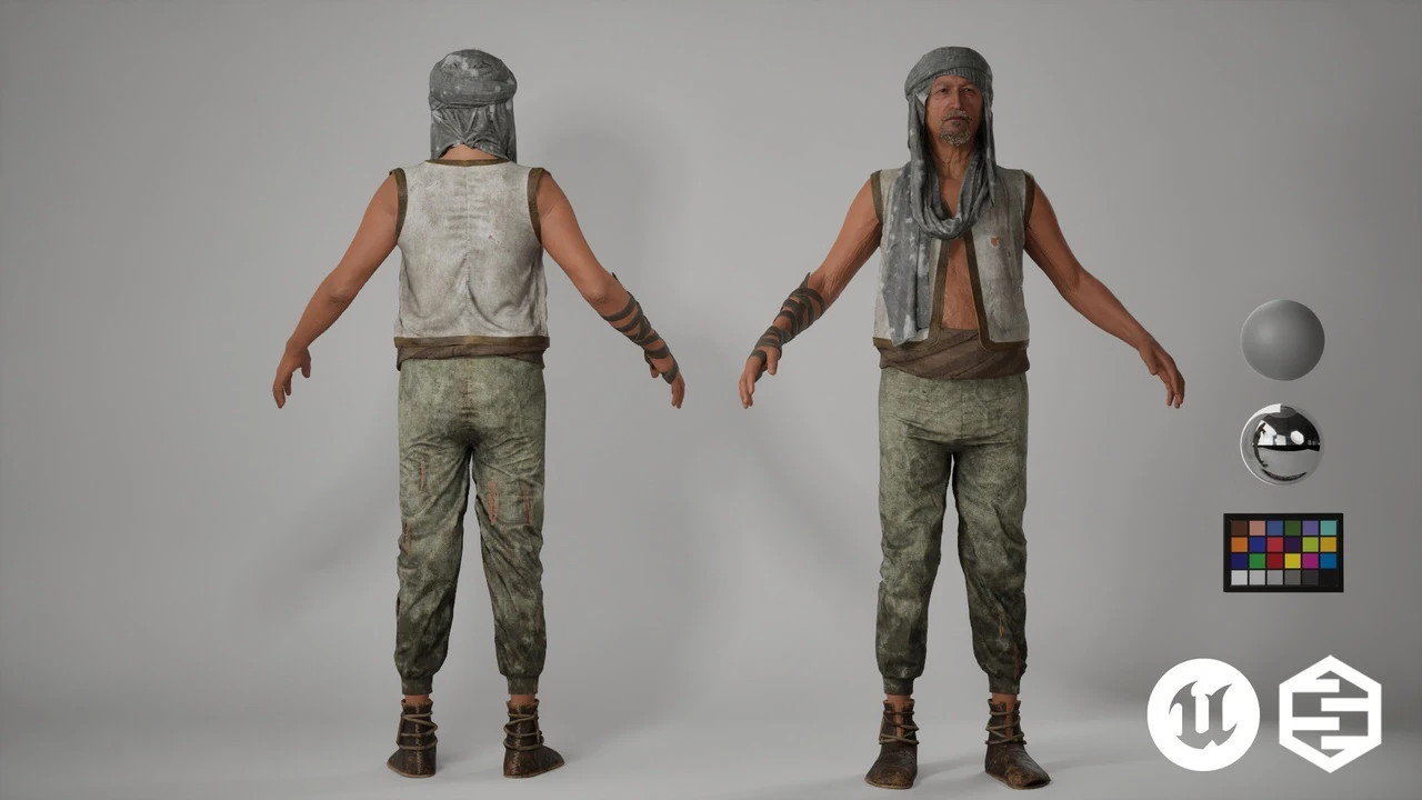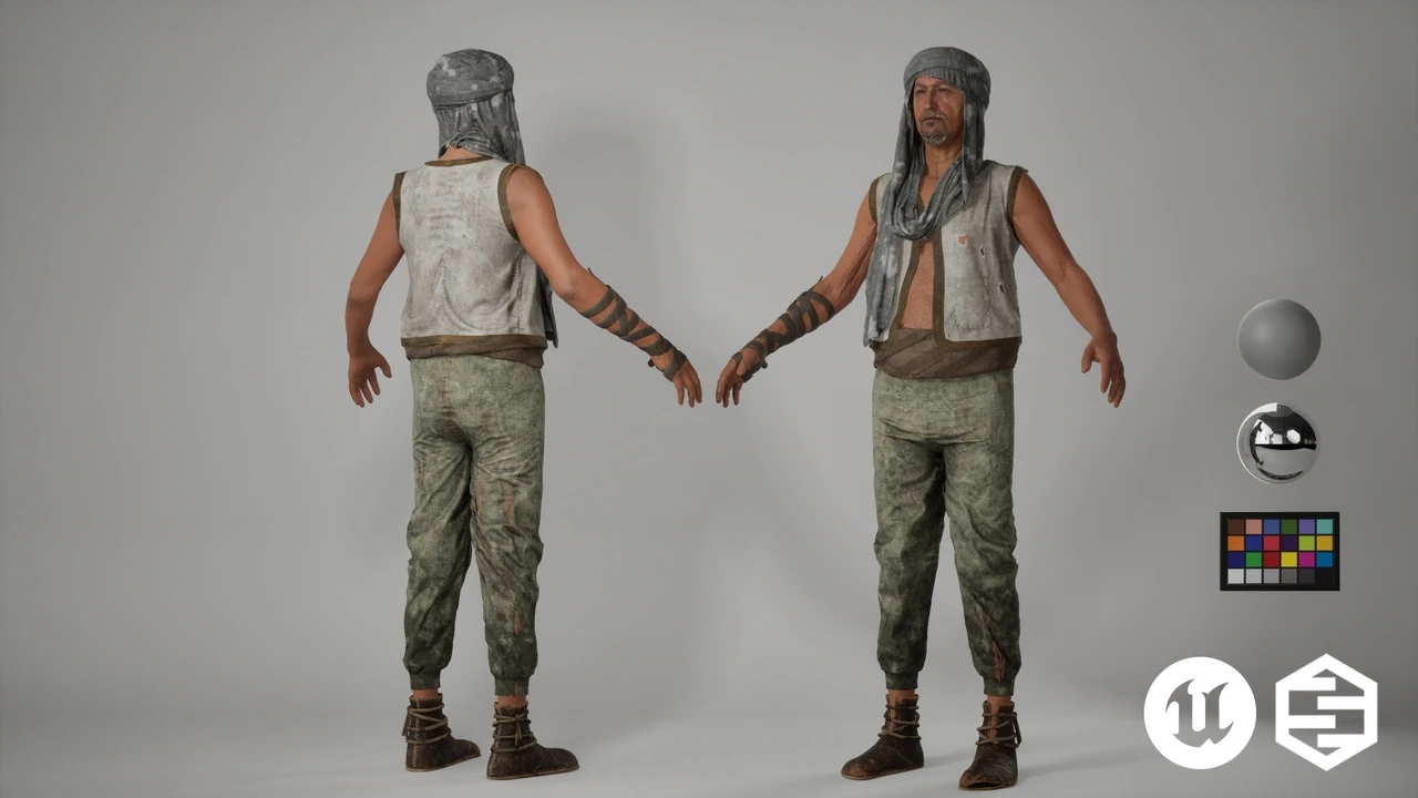 The Poor Man Wanderer is a MetaHuman outfit inspired by commoners and survivors, perfect for historical, fantasy, or post-apocalyptic environments. This outfit is designed to be authentic and flexible, enhancing cinematic sequences, RPG gameplay, historical adventures, and desert-inspired storytelling.