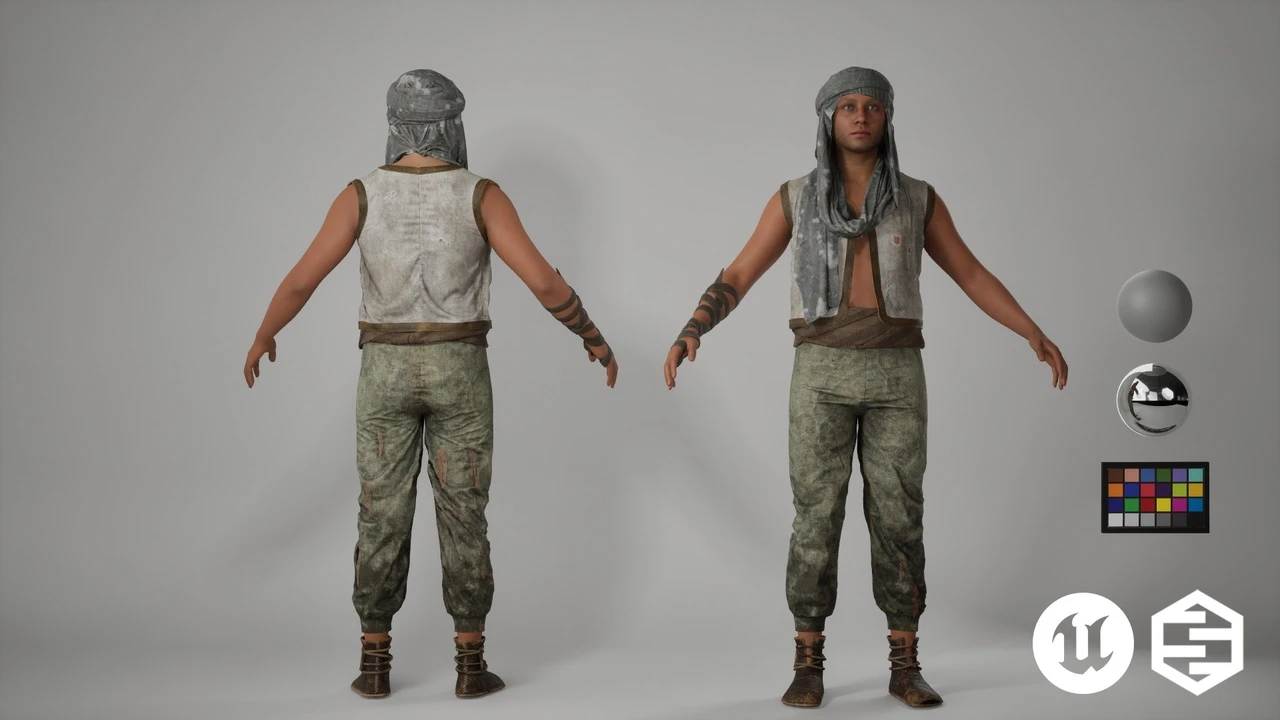 The Poor Man Wanderer is a MetaHuman outfit inspired by commoners and survivors, perfect for historical, fantasy, or post-apocalyptic environments. This outfit is designed to be authentic and flexible, enhancing cinematic sequences, RPG gameplay, historical adventures, and desert-inspired storytelling.