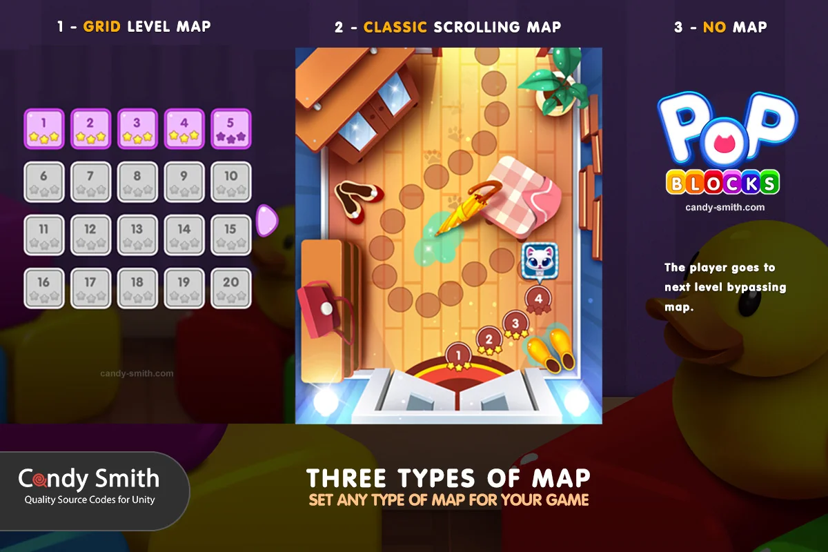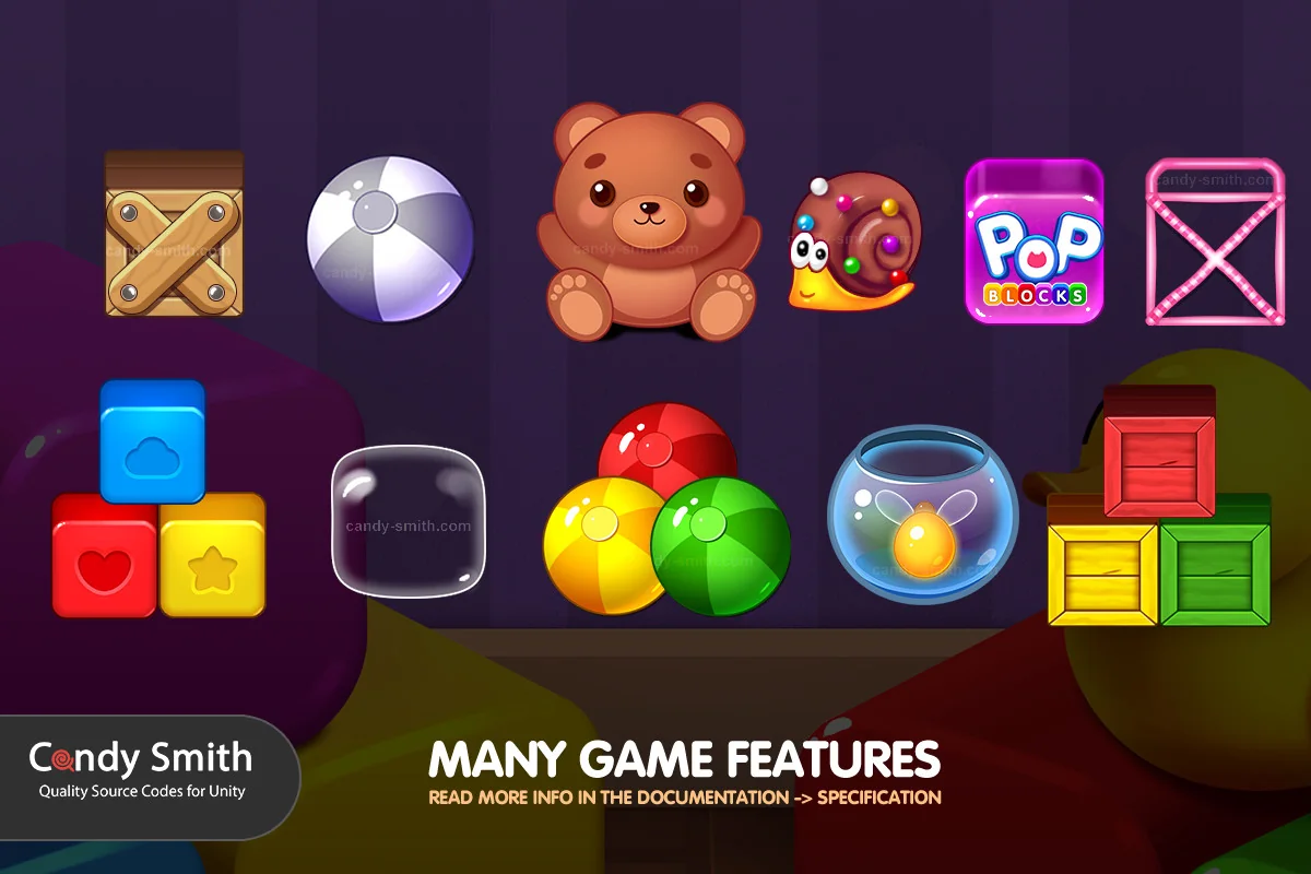 The POP BLOCKS Puzzle Match Kit is a systems-oriented template designed for the Unity engine, specifically targeting the creation of matching-style puzzle games. The kit is built on a prefab-based architecture, where blocks, obstacles, collectible items, and boosters are modular components. This structure allows developers to utilize existing animations and features within each prefab or extend them to meet specific design goals. At its core, the kit aims to reduce the technical barrier to entry by providing a framework that handles the underlying logic of a puzzle game while leaving the aesthetic and mechanical nuances open to customization.