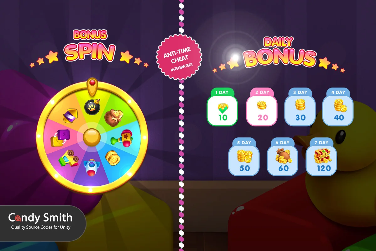 While primarily focused on mobile, the kit includes gamepad support and a virtual mouse system, making it compatible with console-style input. For live-service features, the kit integrates standard mobile game systems including daily rewards with anti-time-cheat logic, a bonus spin mini-game, and tiered shops for coins, lives, and boosters. Social features are handled through Facebook implementation, which supports leaderboards and the display of friends’ progress on the game map.