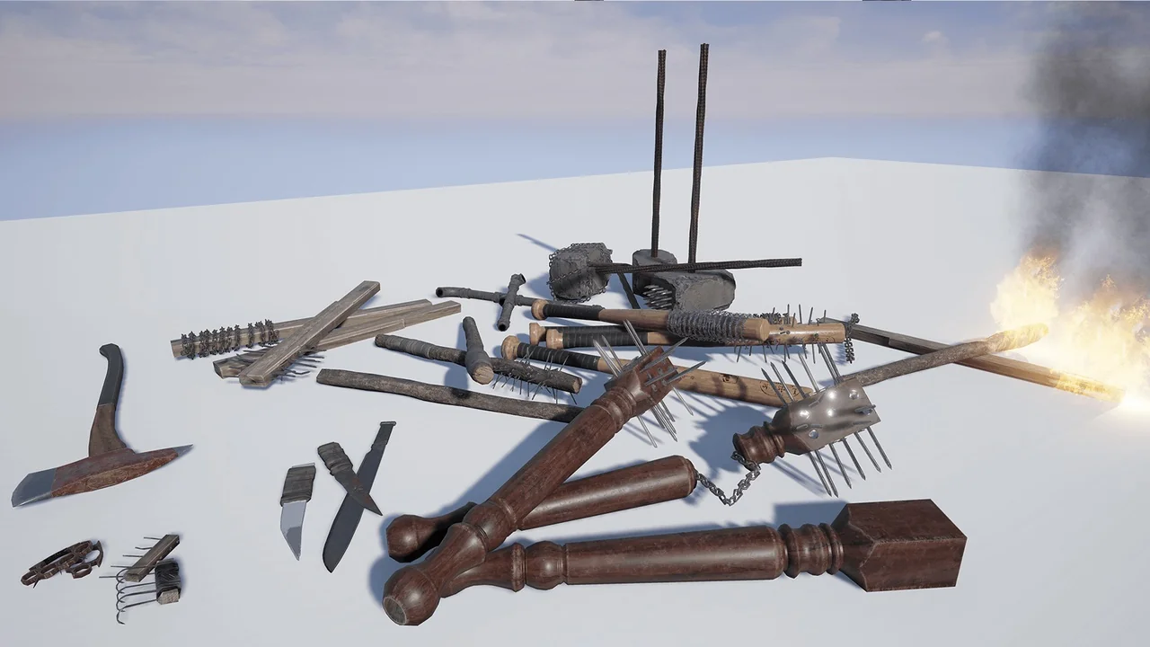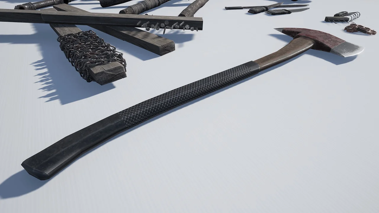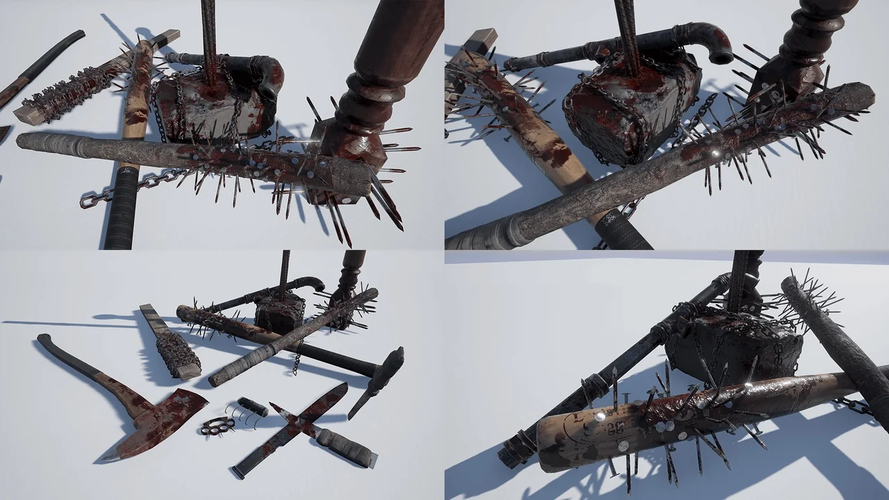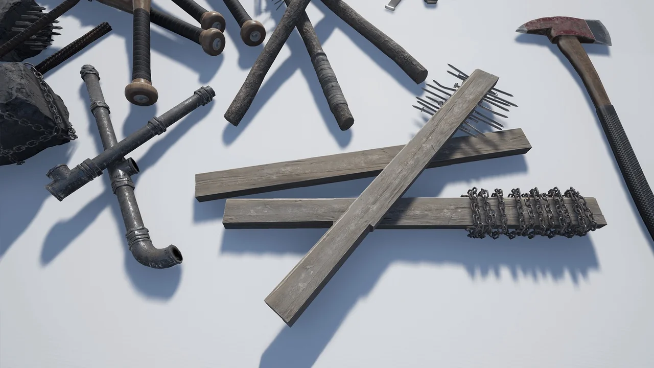 Post-apocalyptic projects often need weapons that feel rough, improvised, and close to the action. This package fits that kind of scene with melee weapons and visible variations, making it useful for environments where ranged gear is not the only focus and the combat sits at armâs length. The material lands in the space between prop work and gameplay-ready setup, which makes it relevant for scenes that need more than a simple static weapon model.