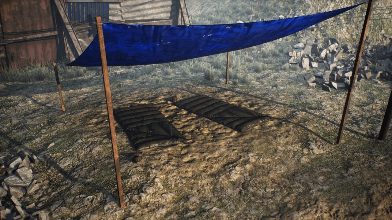 In a survival scenario, shelter is the highest priority. This pack offers several structures to help your characters survive the elements. You can place tarp shelters, sleeping bags, and ruined mattresses to simulate lived-in spaces. Furthermore, the inclusion of a barrel stove and campfire props adds a sense of warmth to cold nights.