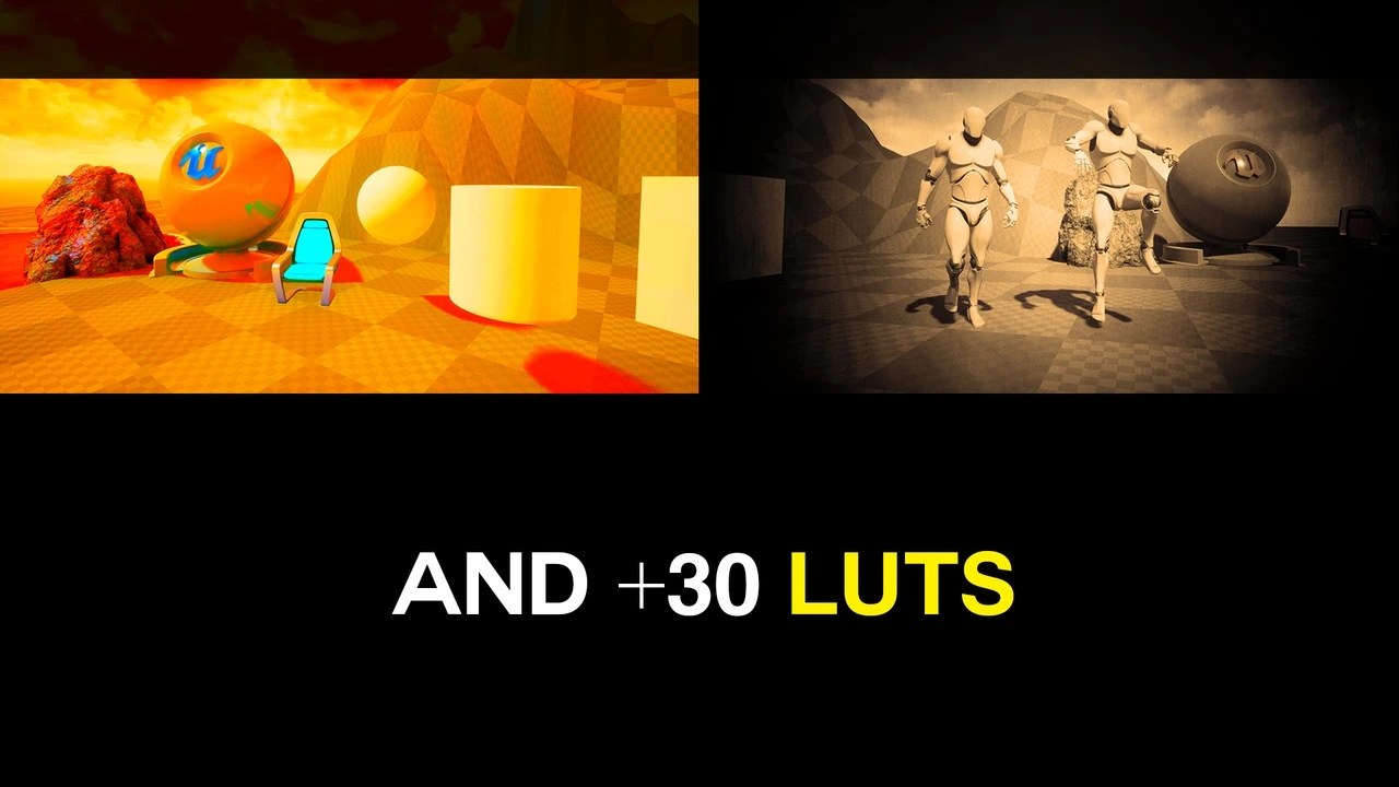 In addition, we’ve included a huge library of 34 professional Look-Up Tables (LUTs). Think of these as one-click cinematic color grades for your game. With a single selection, you can instantly change your scene from a gritty horror atmosphere to a vibrant fantasy world or a washed-out post-apocalyptic wasteland.