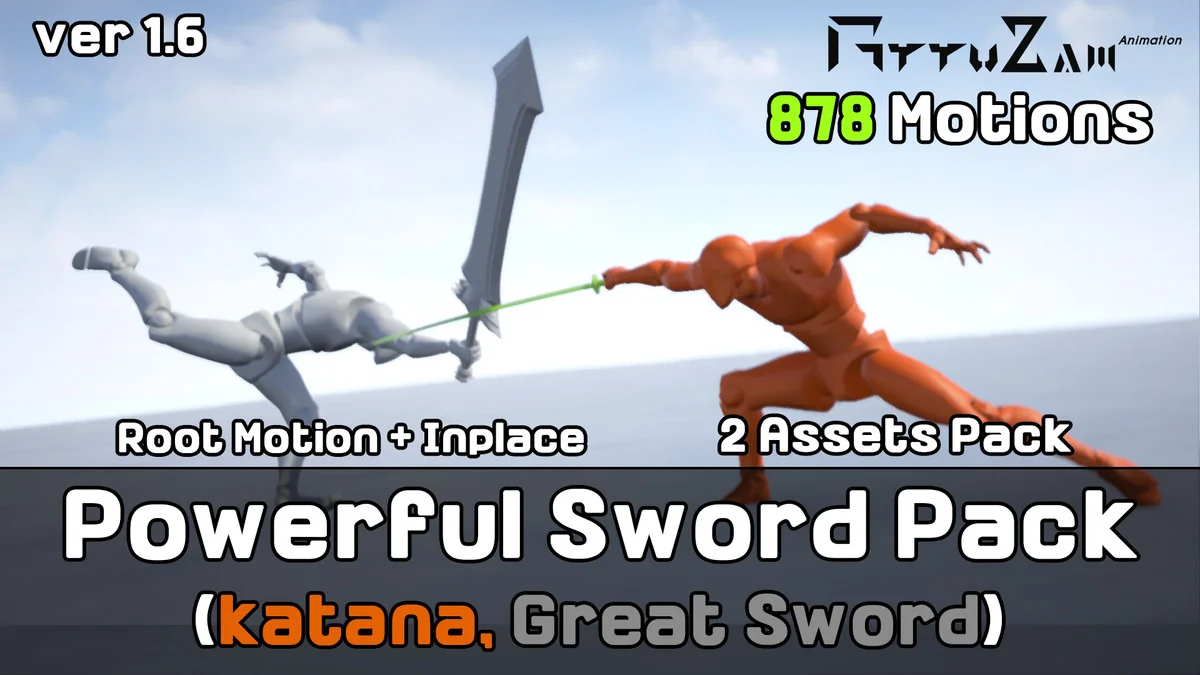 The Powerful Sword Pack(Great Sword + Katana) is a comprehensive animation library designed for high-action game development. This collection is suitable for many genres, including ARPG, RPG, fantasy, and TPS titles. Developers looking to add speedy and flashy combat to their projects will find these assets highly effective. However, please note that this core set is optimized for third-person perspectives rather than first-person shooters.