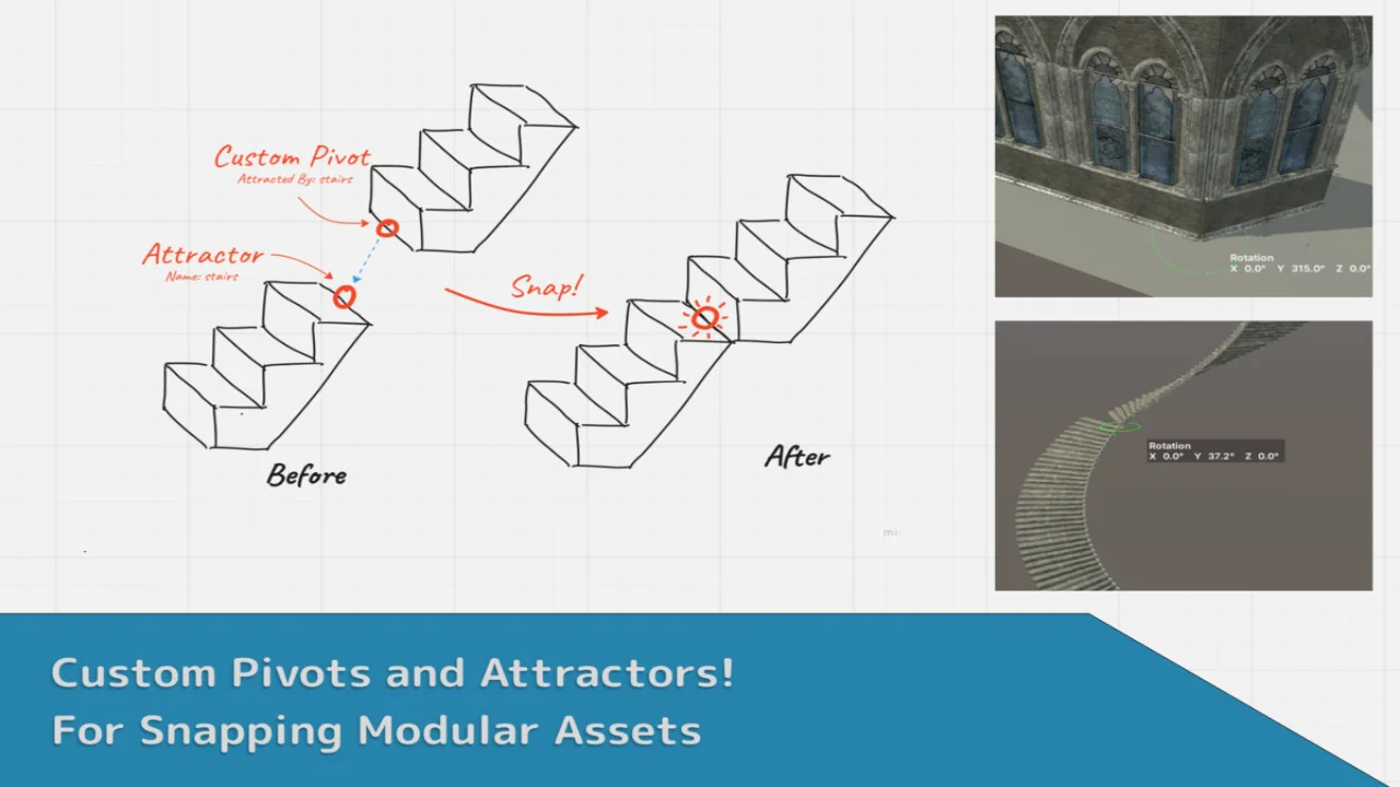 🖌️Custom Pivots & Attractors: Set pivot points anywhere in your prefab for precise placement. Use Attractors to snap custom pivots to designated points for perfect alignment.