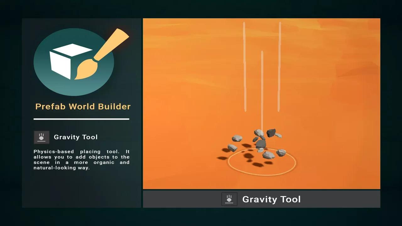 Gravity Tool: Physics-based placing tool. It allows you to add objects to the scene in a more organic and natural-looking way.