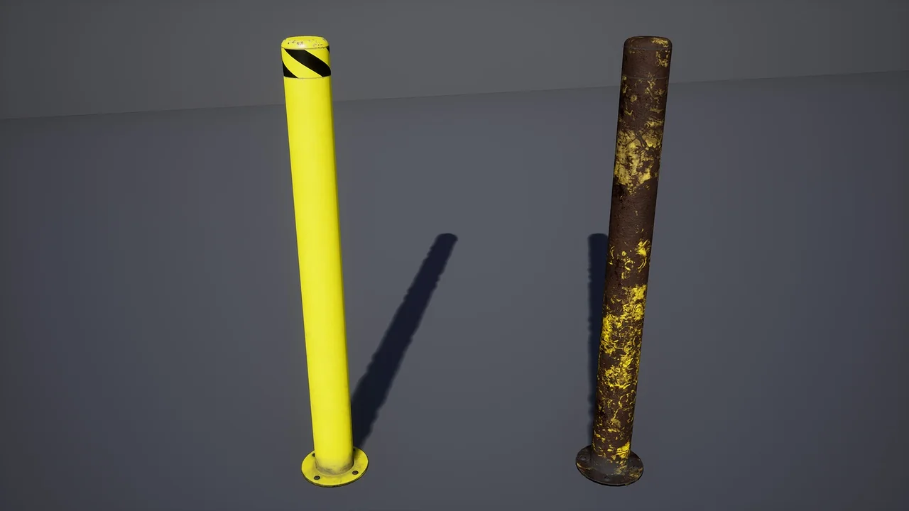 The dual material system allows for great flexibility. You can choose the “new” materials for a recently constructed site. Alternatively, use the “old” materials to depict a weathered, abandoned, or long-running operation. These textures help ground the objects in the world. Moreover, they provide visual variety if you use the same model multiple times.
