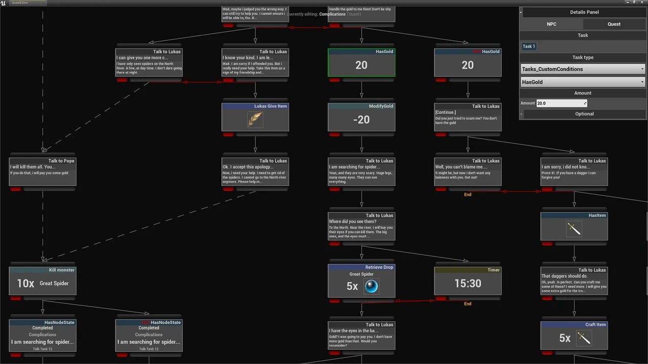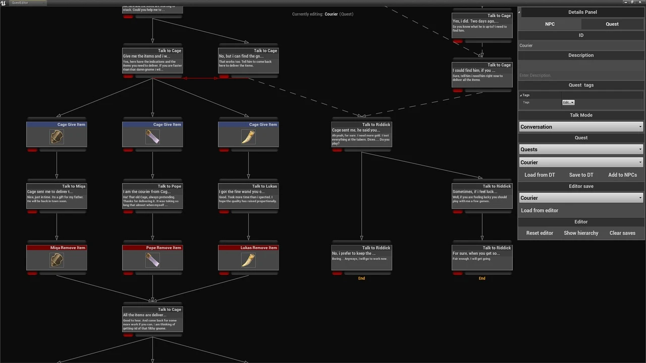 • Quest and dialogs system with simultaneous quests and multiple starts and ends.