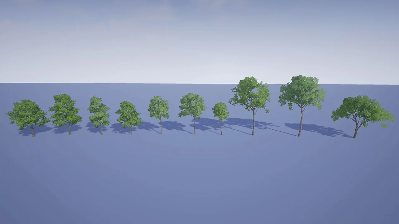 The pack includes 45 unique tree meshes. Consequently, you can create varied forests without repetitive patterns. Each tree comes with four levels of detail (LODs). Moreover, this ensures your game runs smoothly even with many objects on screen. The system automatically swaps models based on the camera distance. In addition, the pack includes billboards for distant rendering. Specifically, these billboards maintain visual quality while saving system resources. As a result, you can populate large landscapes without sacrificing frame rates.