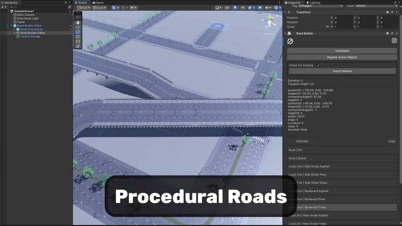 Road Constructor is a tool that lets you construct roads in a style similar to those used in AAA simulation games. You can start building immediately within the editor or integrate a powerful solution into your next city-building project.