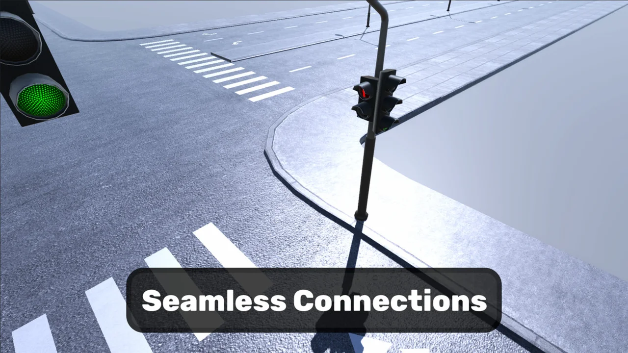 The construction is fully dynamic, generating meshes procedurally rather than using pre-constructed parts. The tool automatically connects roads, creating seamless intersections in real-time. This offers incredible customization options while ensuring high runtime performance.