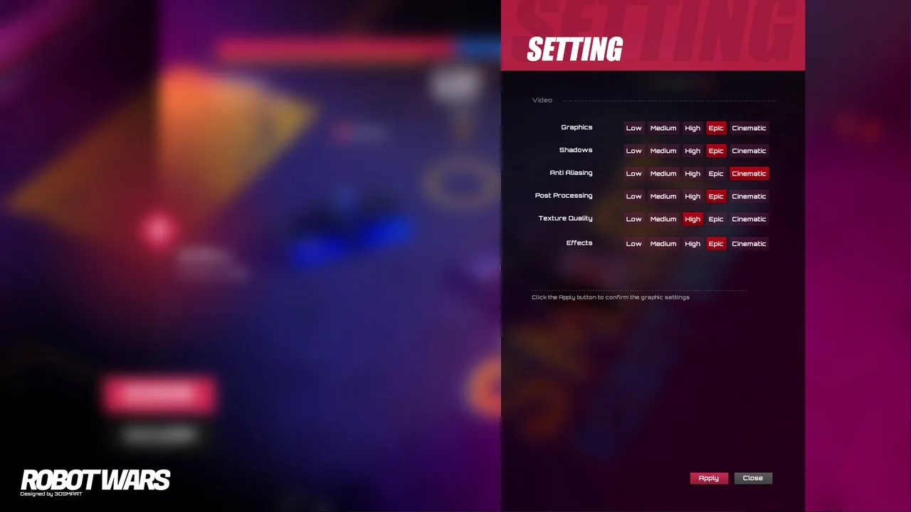 The creator has implemented various systems in the simplest way possible to ensure accessibility. Therefore, users can experience a fully functional game template right out of the box. The environment is specifically inspired by robot warfare competitions to provide an attractive and immersive setting.
