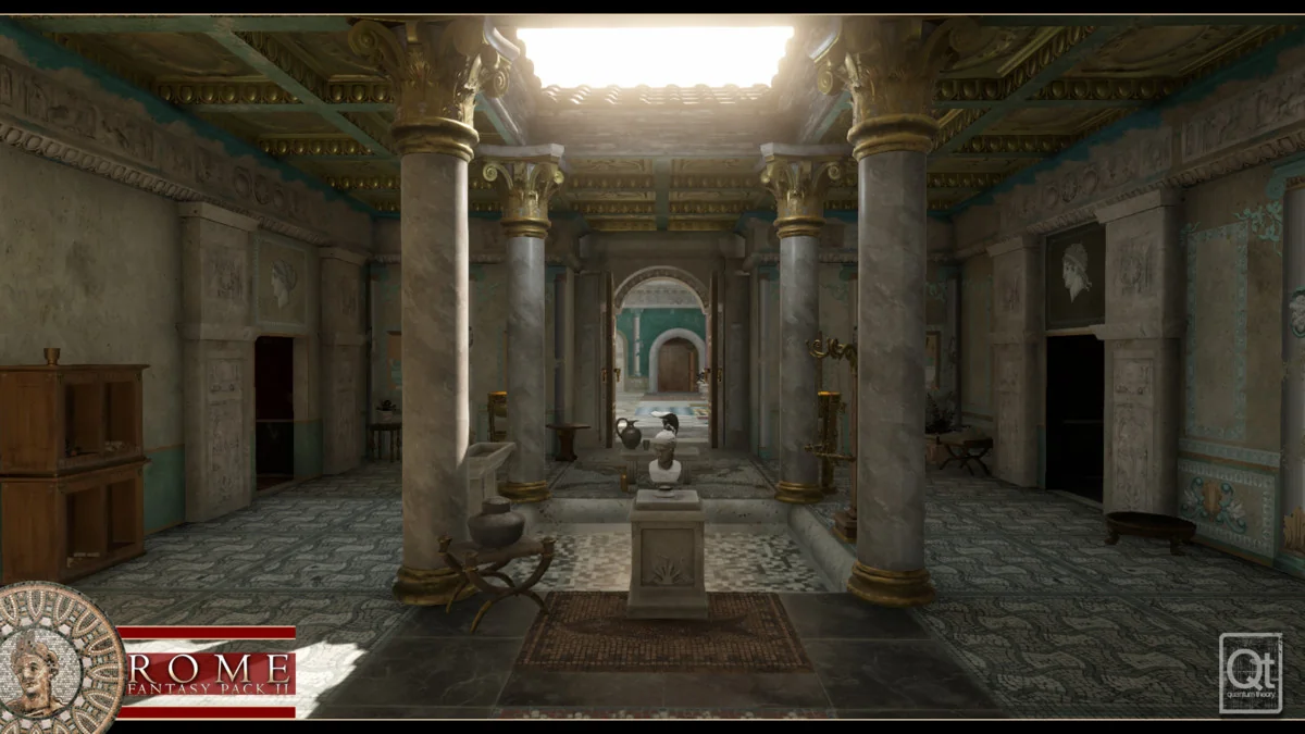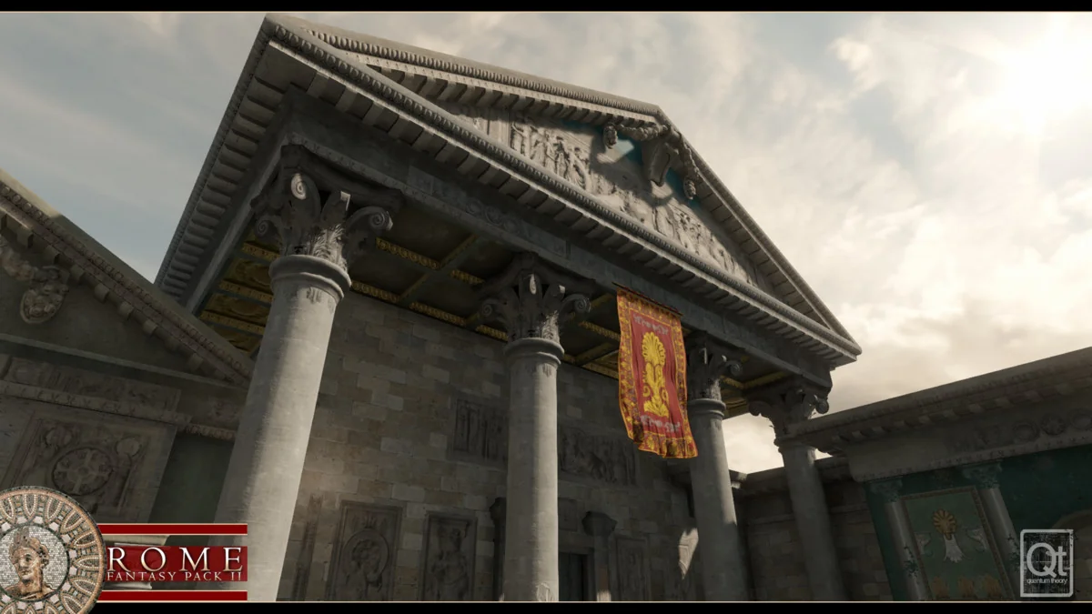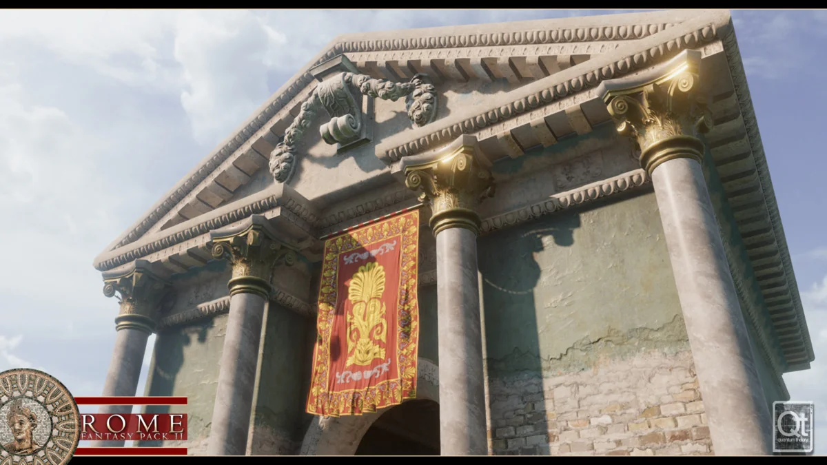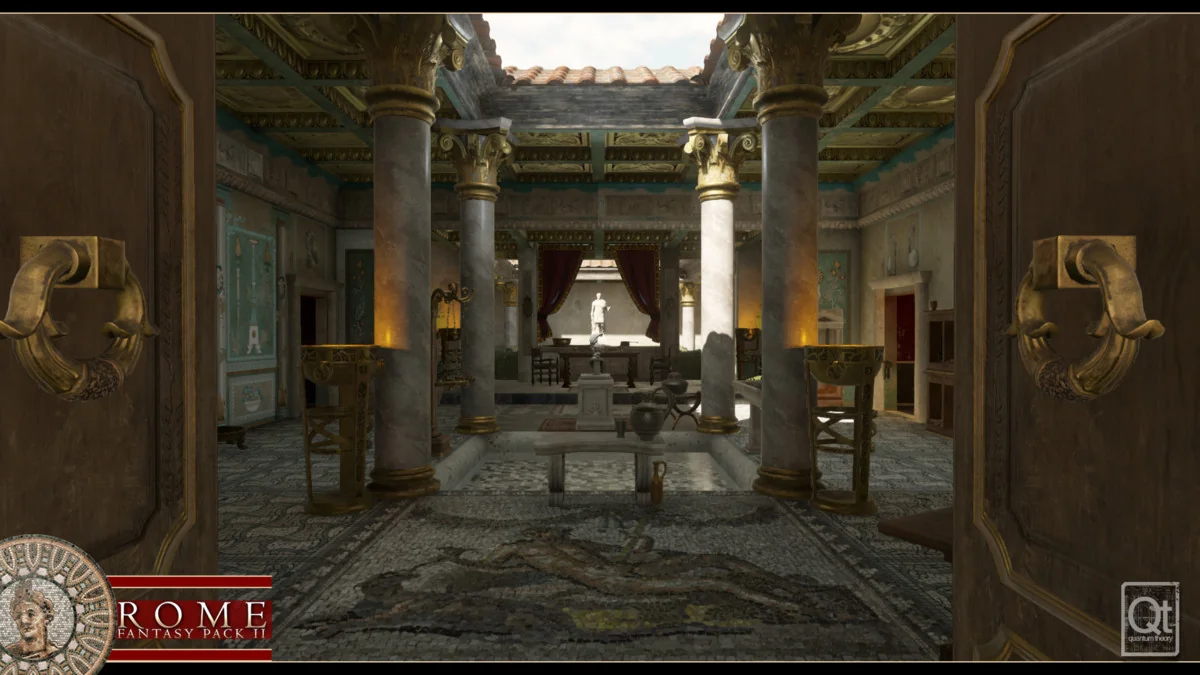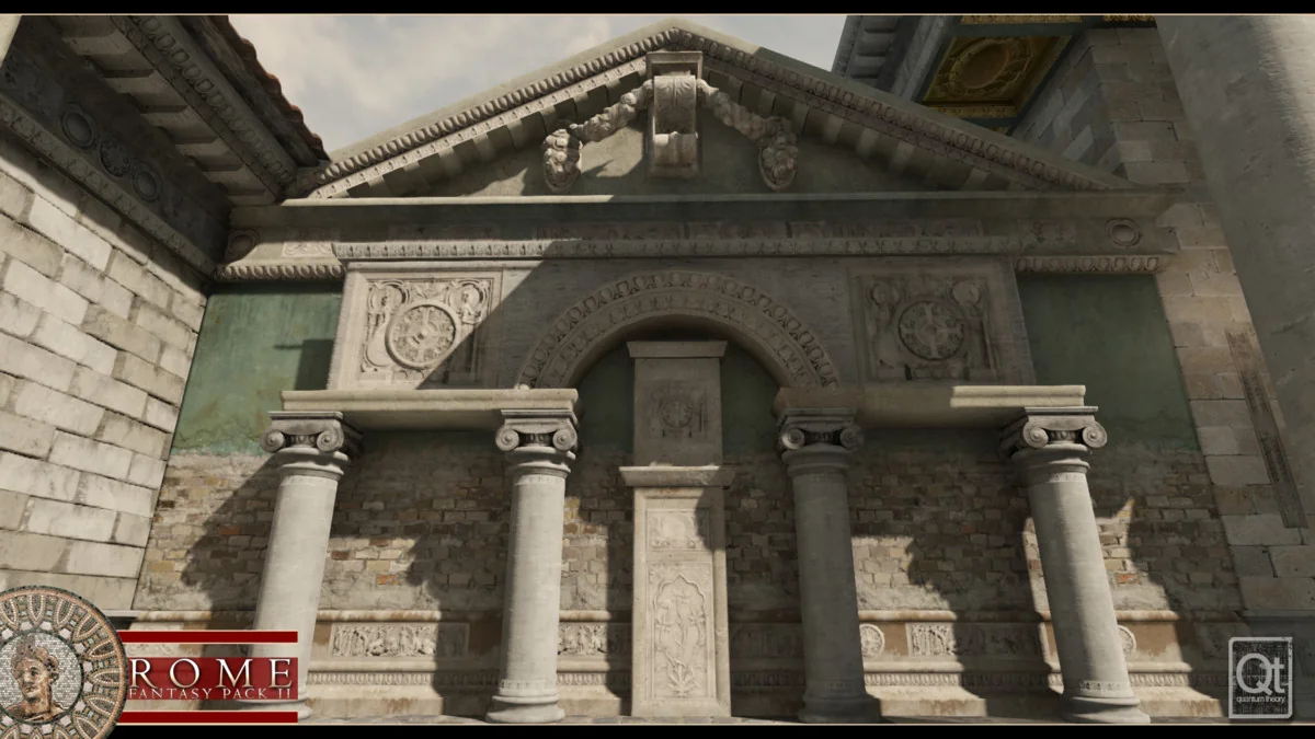 Building classical Roman environments requires a high degree of precision and repetitive structural elements. Rome: Fantasy Pack II addresses this through a modular prefab system covering walls, doors, roofs, and stairs. This allows for the rapid assembly of both massive temple exteriors and detailed domestic interiors. To maintain performance across these complex scenes, the package includes a Combine Mesh editorscript. This tool enables users to assemble structures from various prefabs and then merge them into a single prefab, significantly reducing drawcalls during rendering.