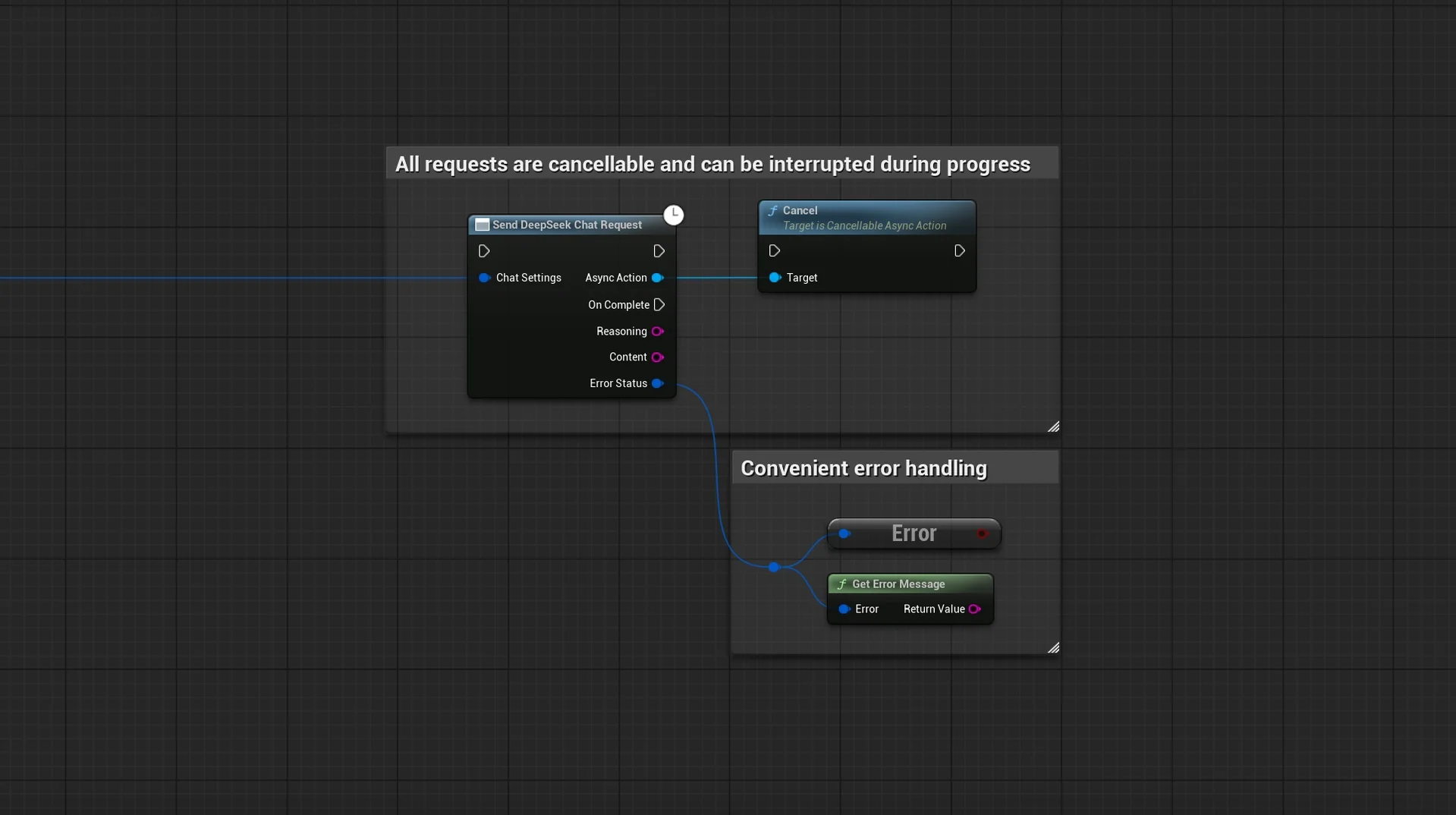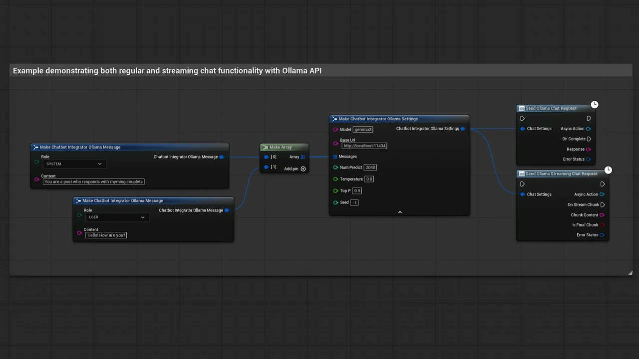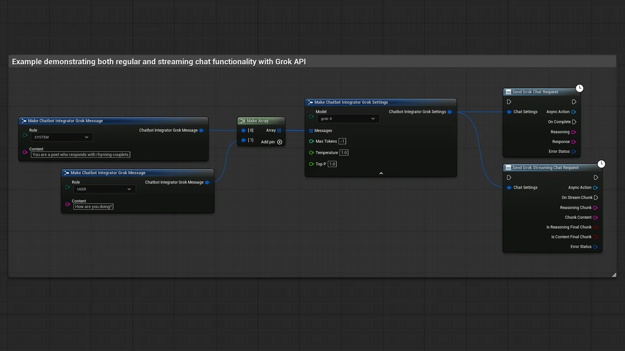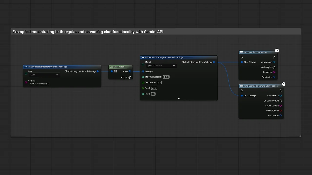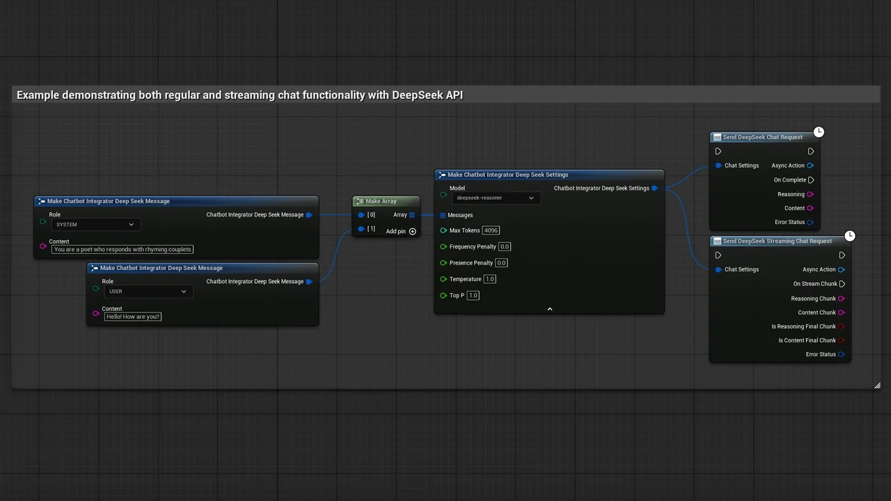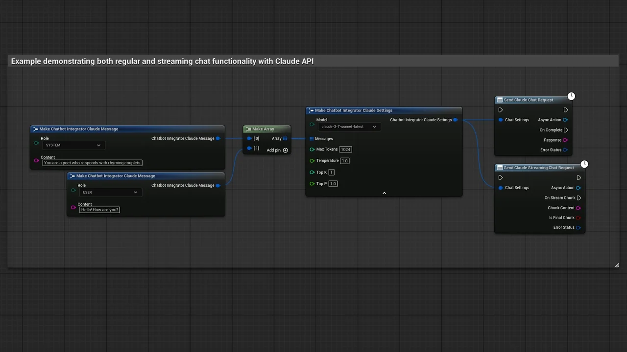 Note that the images and examples for text-to-speech were created using the Runtime Audio Importer plugin. To follow those specific examples, you will need to install that additional plugin. However, you are free to implement your own audio handling solution if preferred. For standard text-to-text functionality, the additional importer is not required.