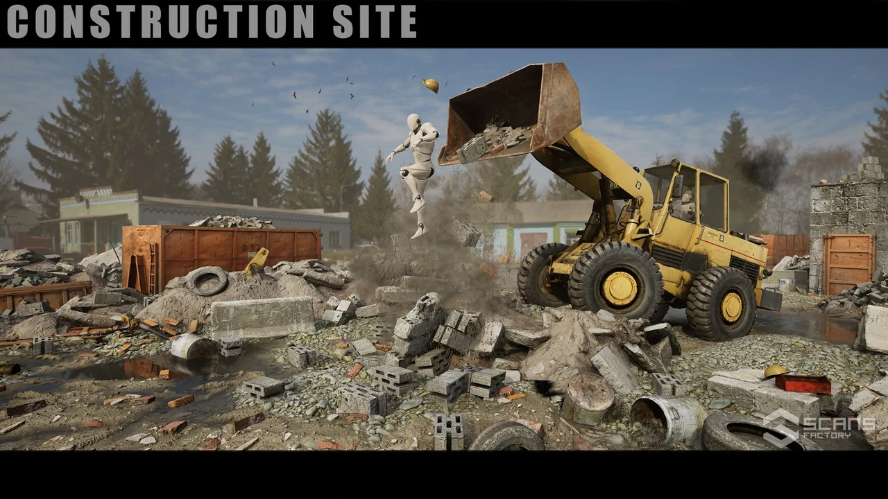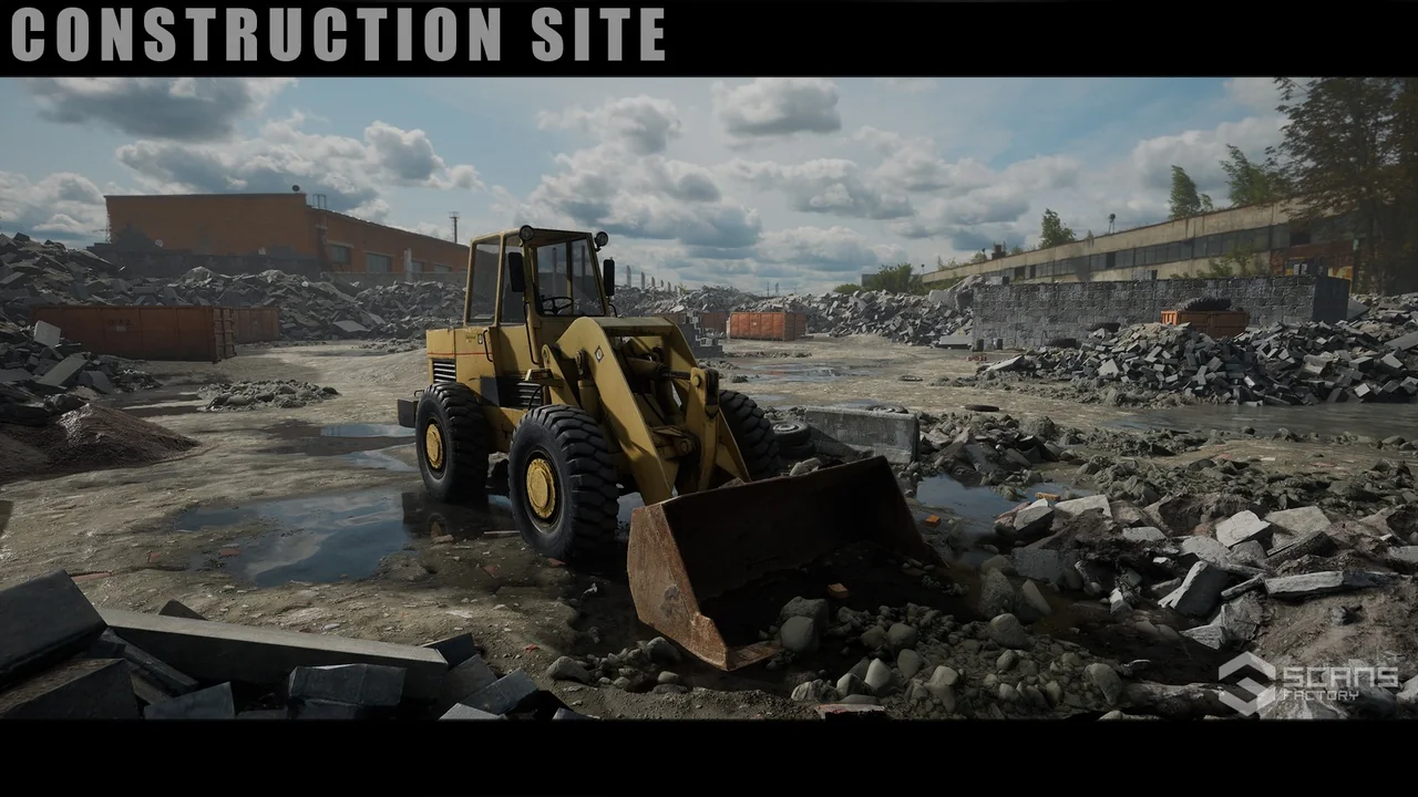 [SCANS] Construction Site: Loader is a high-fidelity asset pack designed to bring realism and interactivity to your industrial game environments. This package features a fully drivable front-end loader that is based on photorealistic scans. Consequently, every detail looks authentic and grounded in reality. Developers can use this resource to create immersive construction sites or destroyed urban settings.