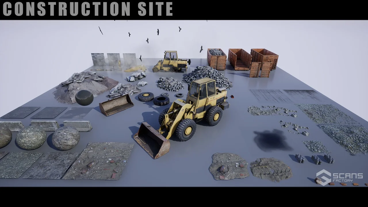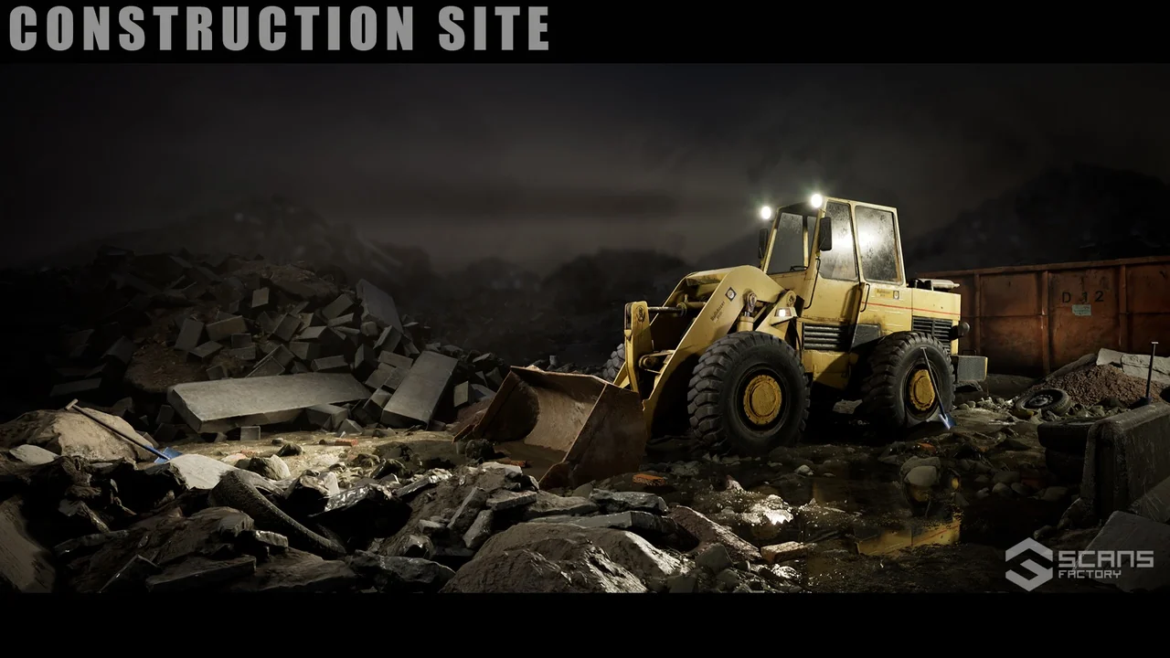 Beyond the vehicle itself, this pack provides various objects to build a complete scene. You will find items perfect for creating a destroyed or active construction environment. Therefore, you can build complex levels without needing many additional resources. [SCANS] Construction Site: Loader simplifies the level design process for industrial zones.