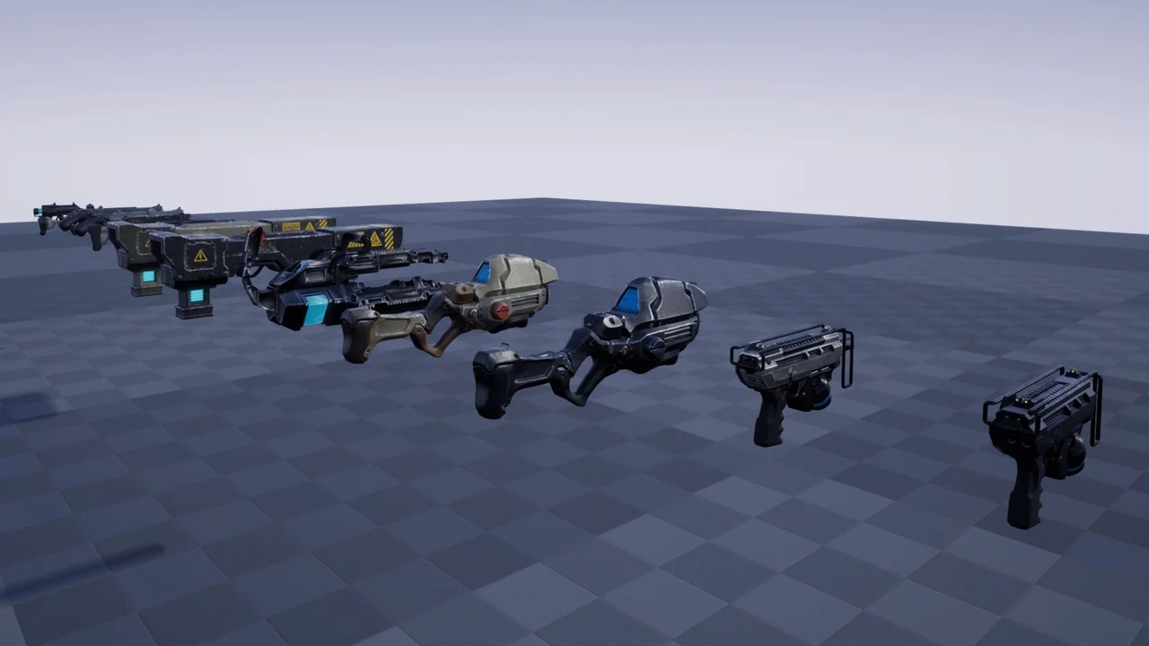 No soldier is complete without a proper arsenal. This pack includes a wide range of sci-fi weapons designed to match the character perfectly. For example, you receive a variety of firearms that fit the provided animation set. The included weapons are: