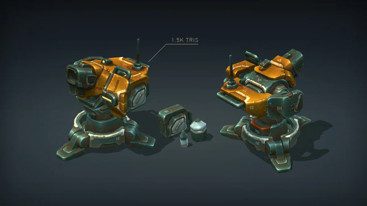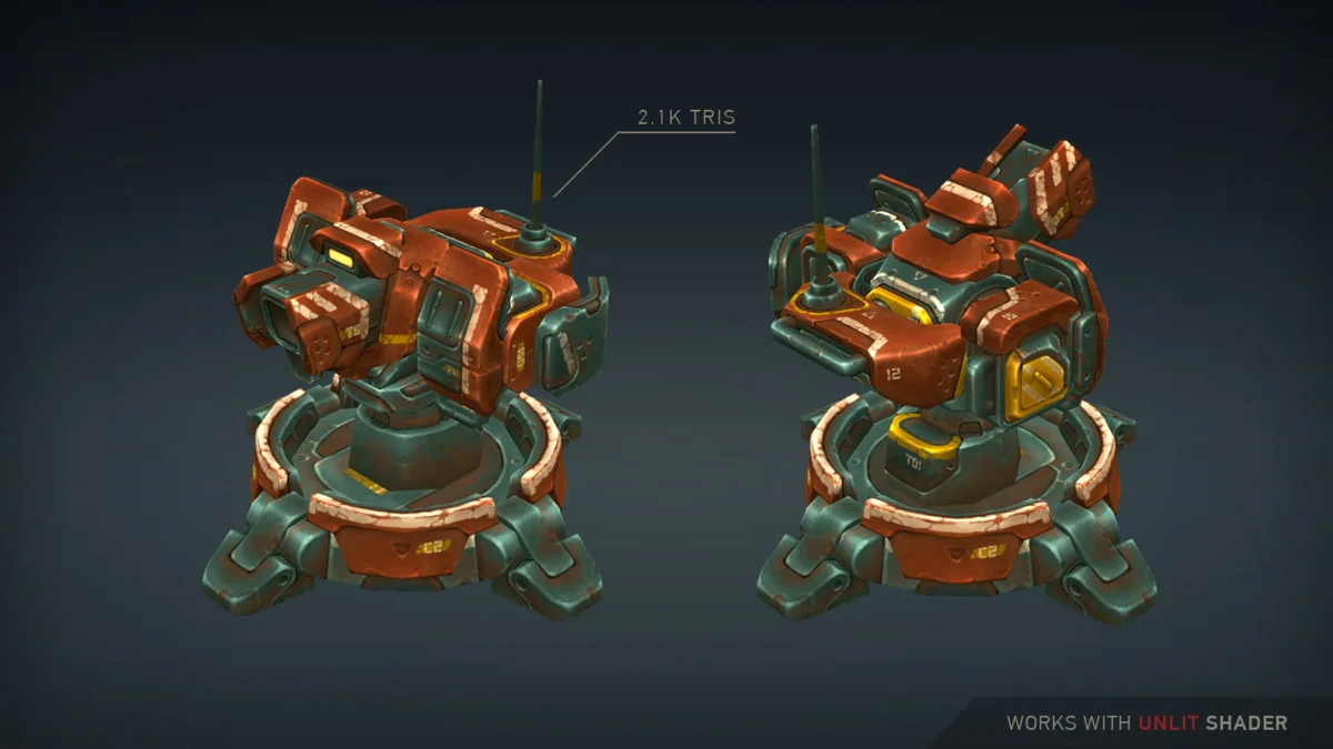 The Sci-Fi Turret Constructor is designed as a modular ecosystem for building defensive structures and aerial units. As a component of the broader Mech Constructor series, the package is built for cross-compatibility with other assets in the line, including Light and Medium Mechs, Spiders, Tanks, and Humanoid Robots. This interoperability is maintained through matching textures and interchangeable geometry, allowing developers to mix parts from different sets to maintain a cohesive visual style across various unit types.