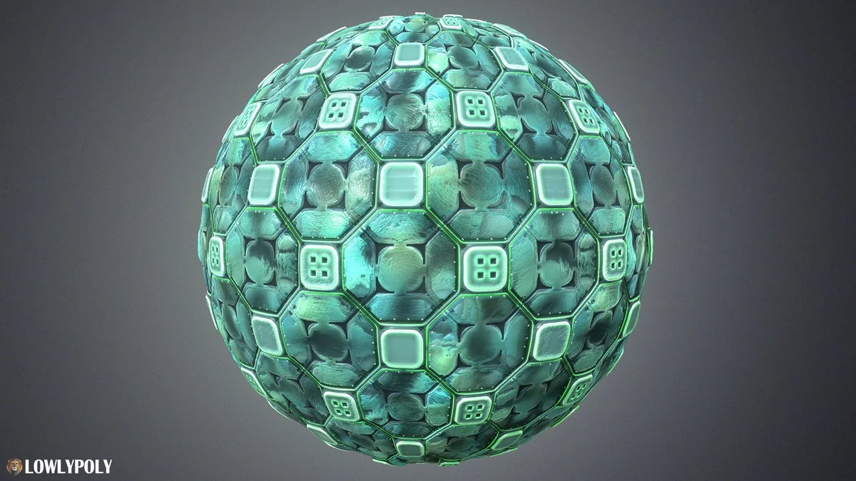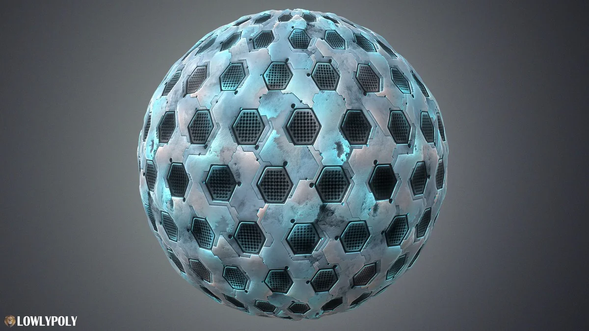 - Roughness maps to define how light scatters across the sci-fi surfaces.