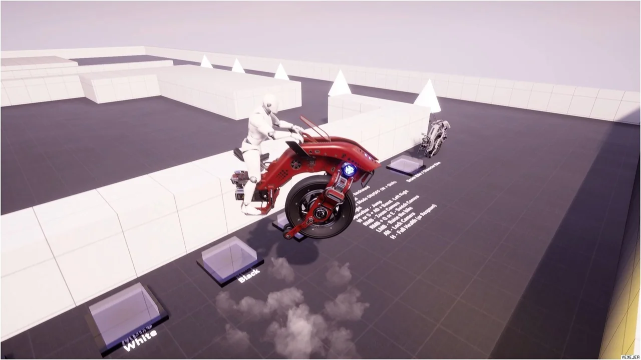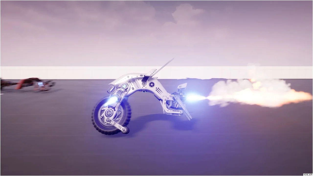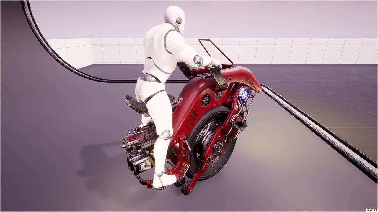 This mono bike features built-in blueprints that allow for seamless gameplay integration. Developers can use these pre-configured scripts to create engaging movement for their players. Therefore, you do not need to build a driving system from scratch.