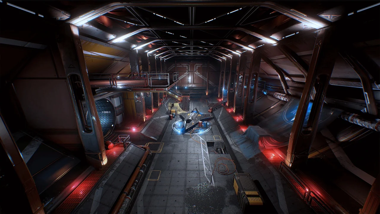 The included demo level illustrates various combinations of asset placement. Therefore, users can grab specific parts of the environment and reuse them to build entirely new levels. This fully finished hangar map serves as an excellent starting point or reference for new designs.