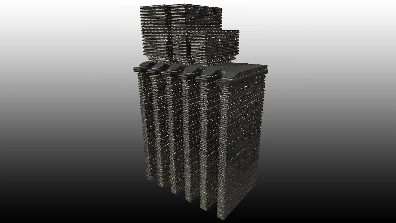 One of the primary uses for this collection is creating large-scale architecture. The columns and roof sections allow for significant verticality. Moreover, the building designs lean into a mechanical and industrial aesthetic.