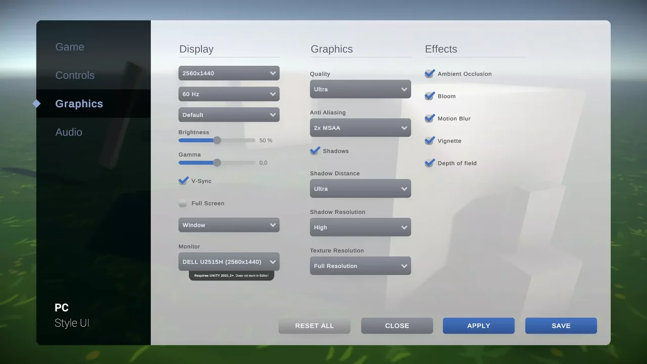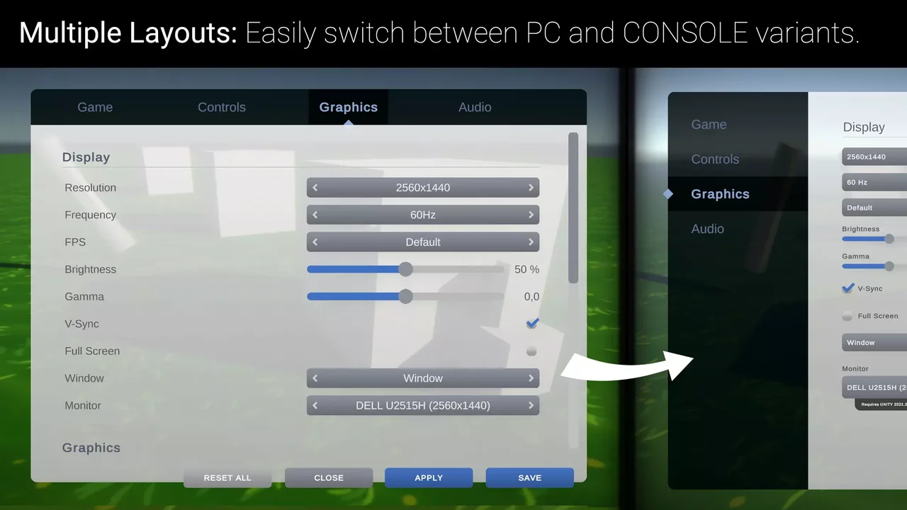 Settings & Game Options – Unified Menu<div class="post-tags single-post-tags"><span class="custom-tag">Original Unity version: 2020.3.30</span><span class="asset-version-tag">Asset Version: 1.41</span></div>
