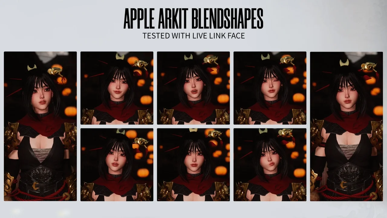 - Facial Animation: 52 ARKit Blendshapes (Morph Targets).
