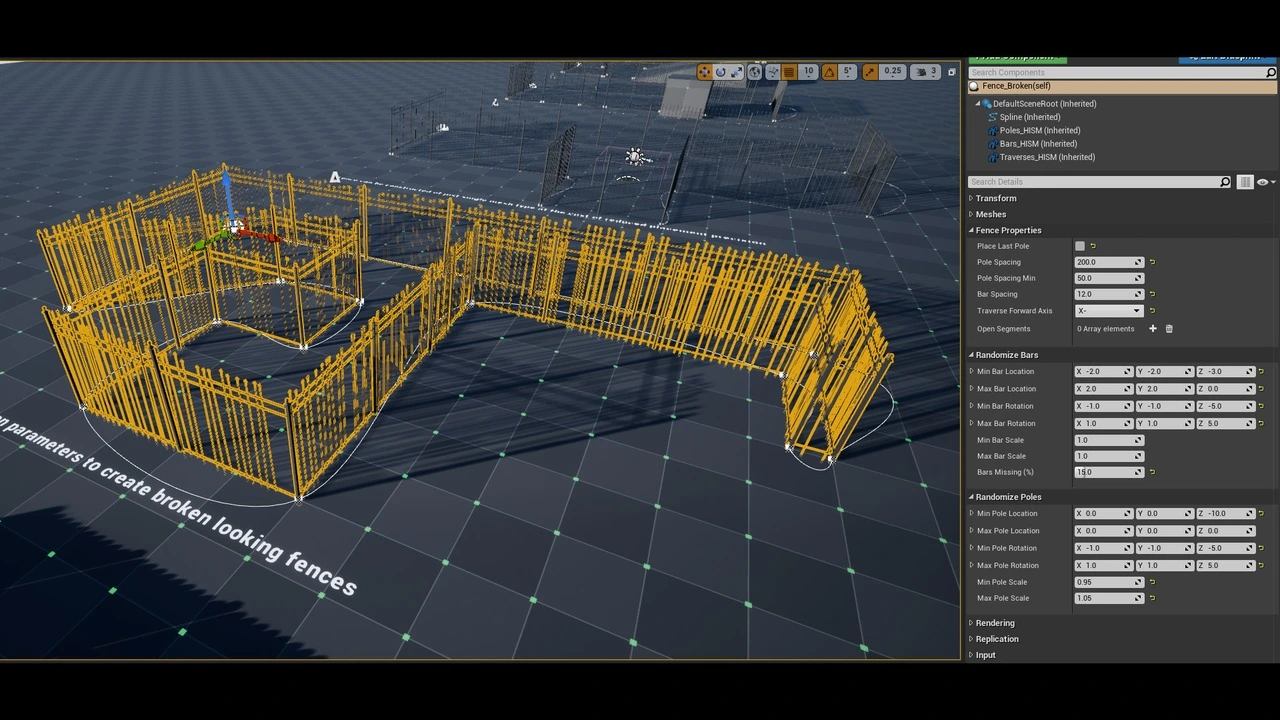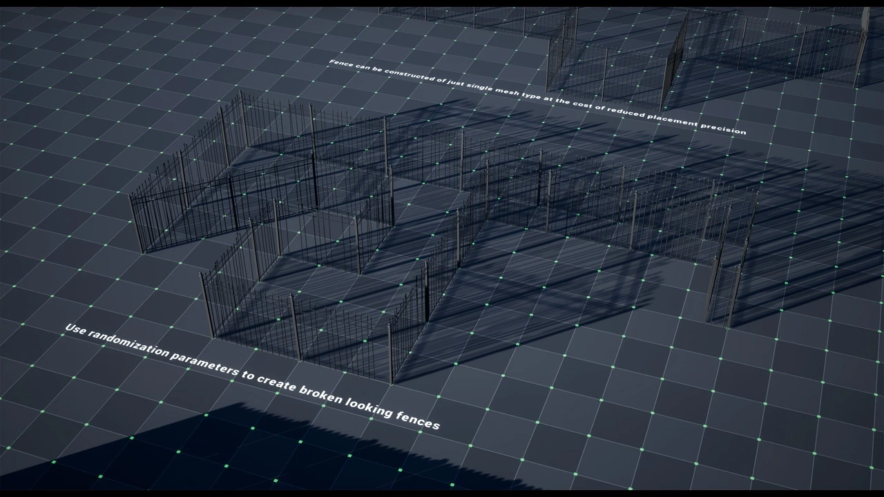 First and foremost, this is not a limited content pack. It’s a powerful generator that works with your own custom static meshes. This means you can create an unlimited variety of fence styles that perfectly match your project’s unique art direction, from simple wooden posts to futuristic sci-fi barriers. - Clean, Documented, and Ready to Modify